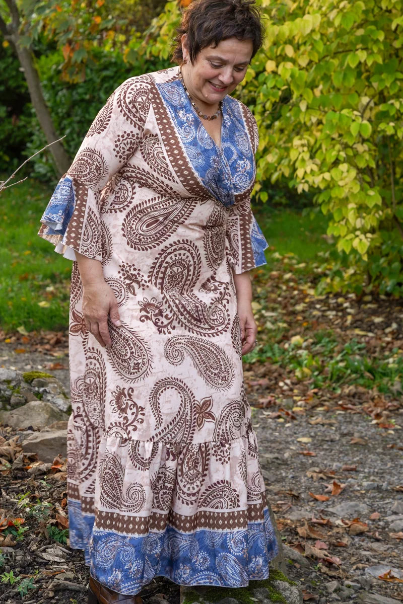 Convient d’un 36 au 42. Longueur au dessus des chevilles Décolleté croisé Cintrée à la taille Made in Italy