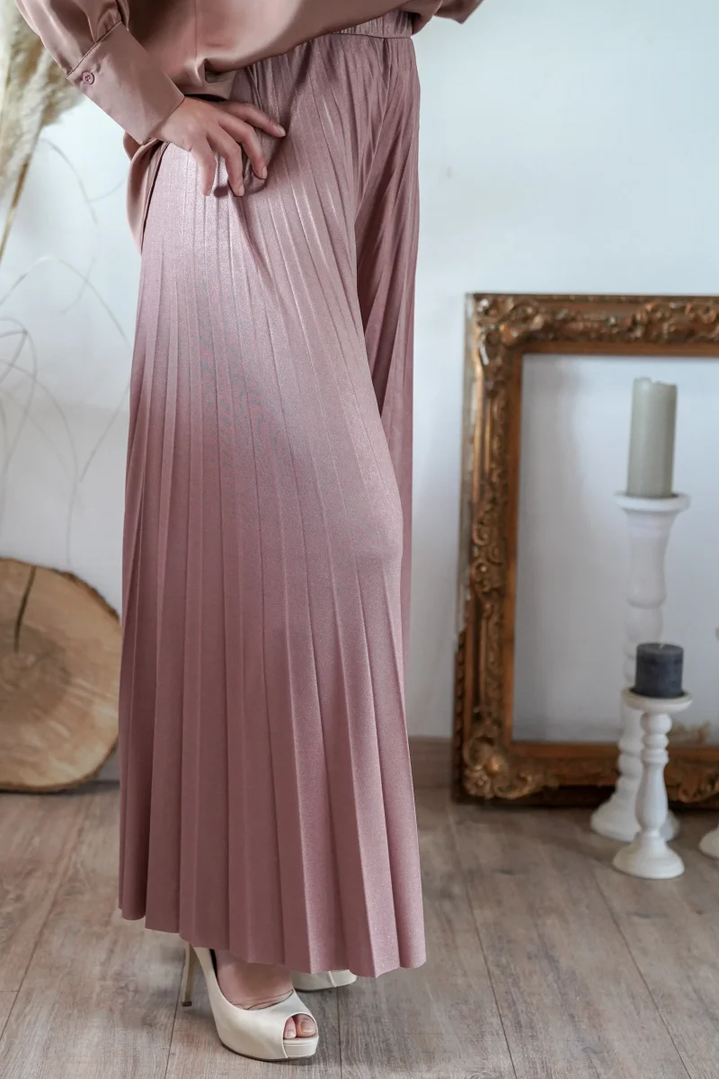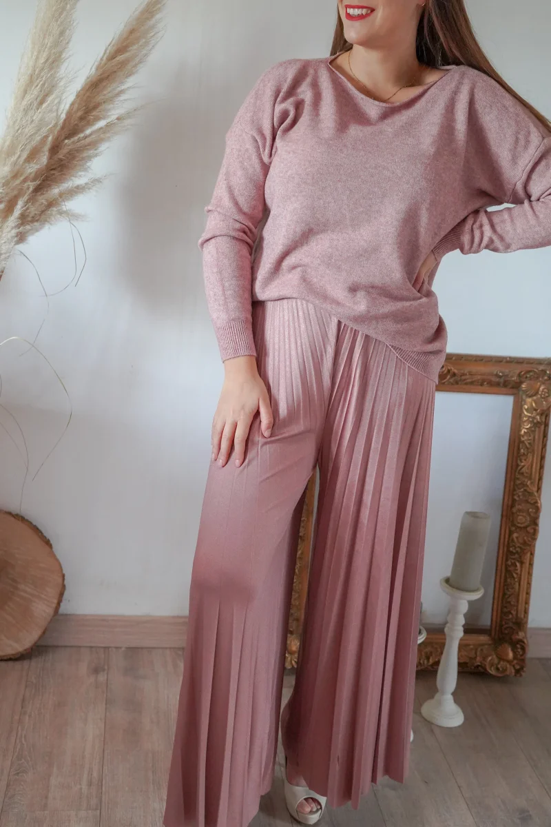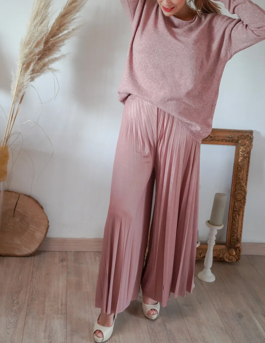 - Pantalon fluide plissé rose à paillettes