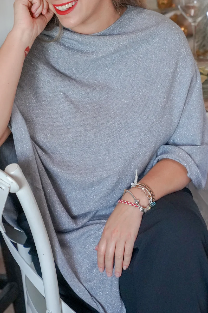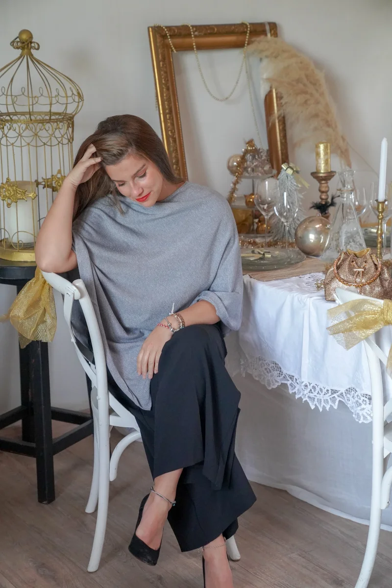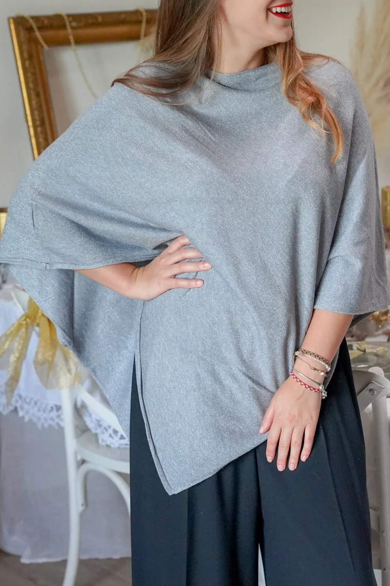 Poncho gris Effet pailleté Matière agréable Made in Italy