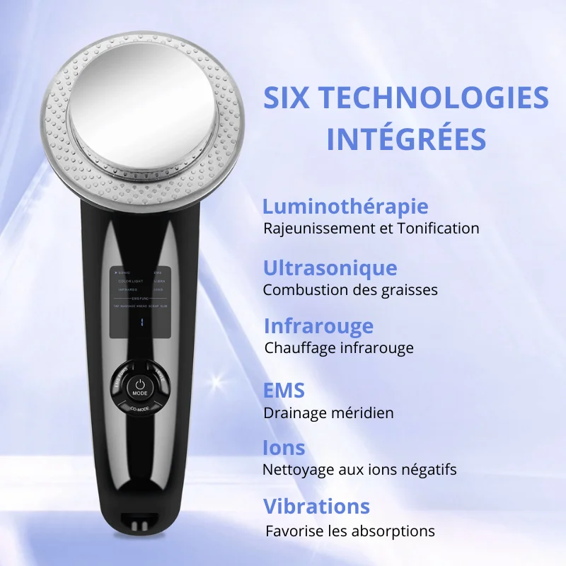 Doté d’une technologie ultrasonique de pointe, cet appareil 6-en-1 offre des performances exceptionnelles :