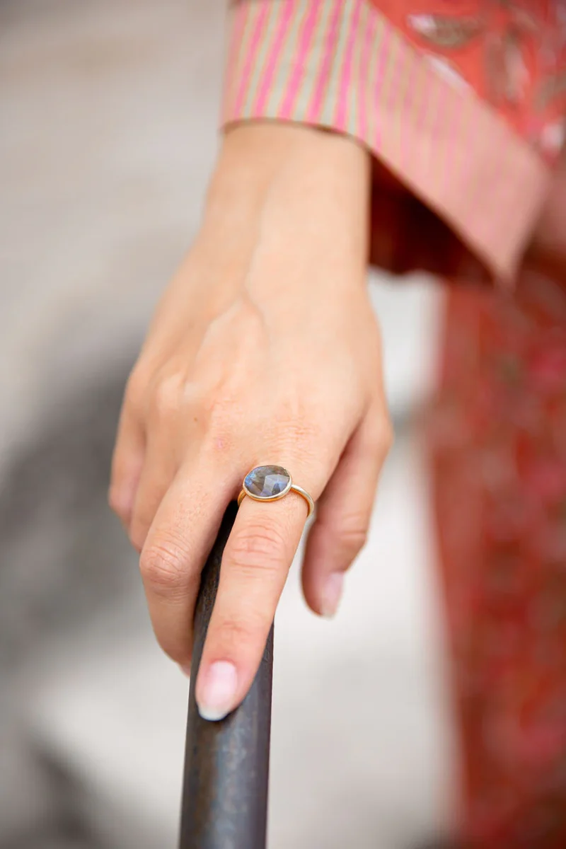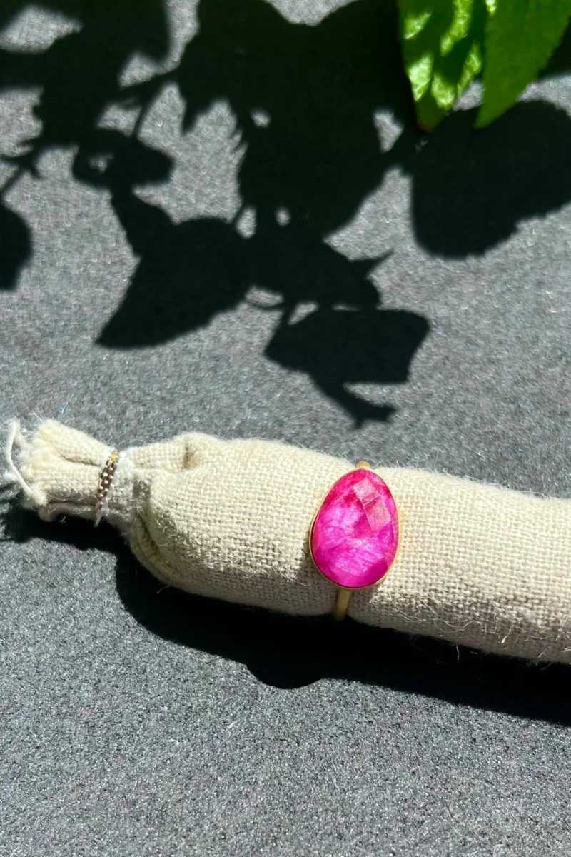 La Bague Maamala est dorée à l’or fin et sertie de pierres semi précieuses.