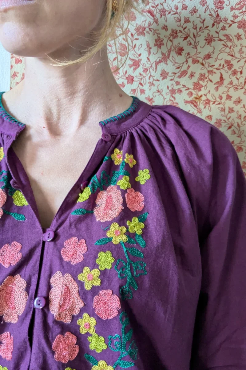 Succombez au charme de notre blouse JAMMU, confectionnée en 100 % coton indien pour une légèreté et un confort incomparables. Ses broderies délicates et son détail brodé au col témoignent d’un savoir-faire artisanal unique.