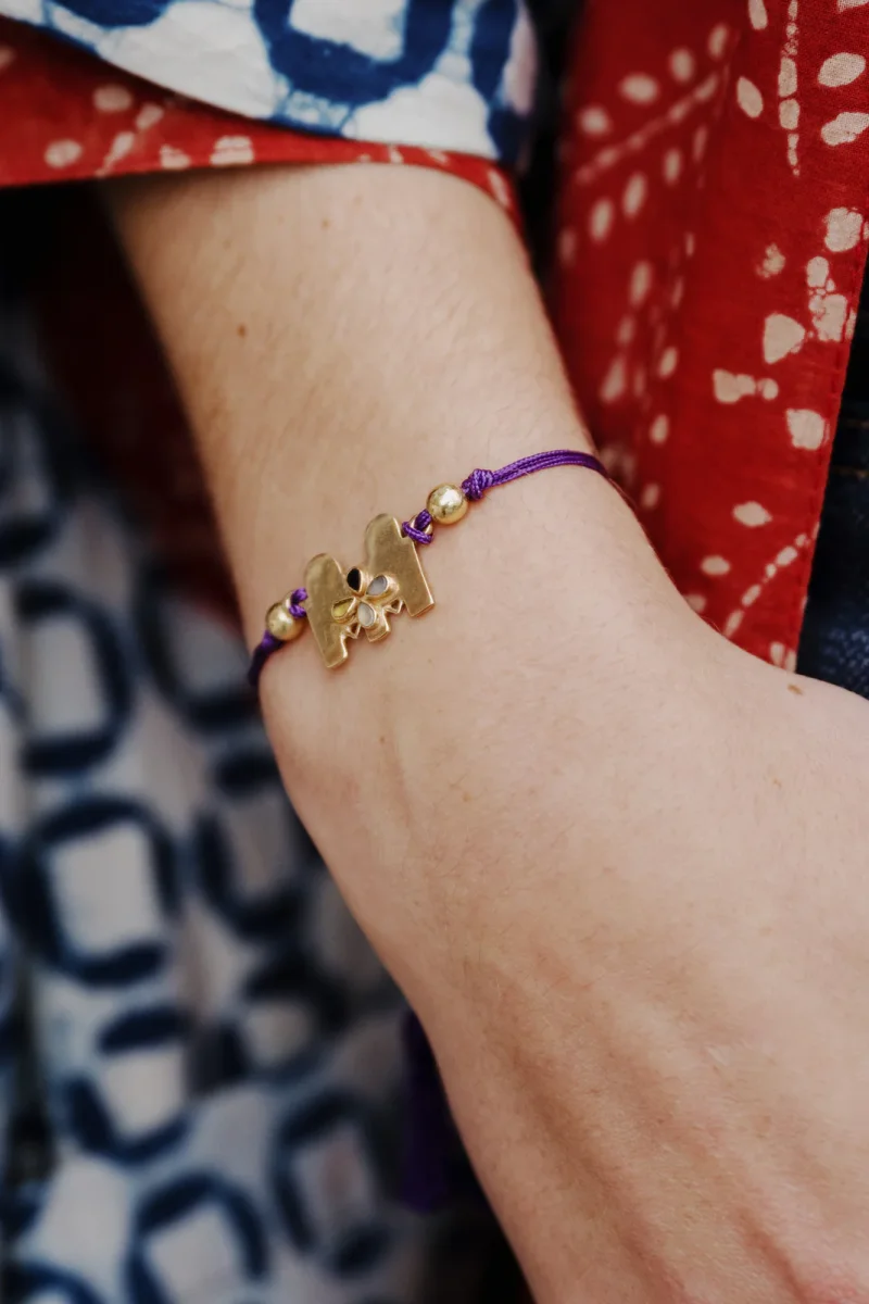 Elégant et discret, craquez pour ce bracelet amulette fait en fil de coton, doré à l’or fin et serti de pierres semi-précieuses.