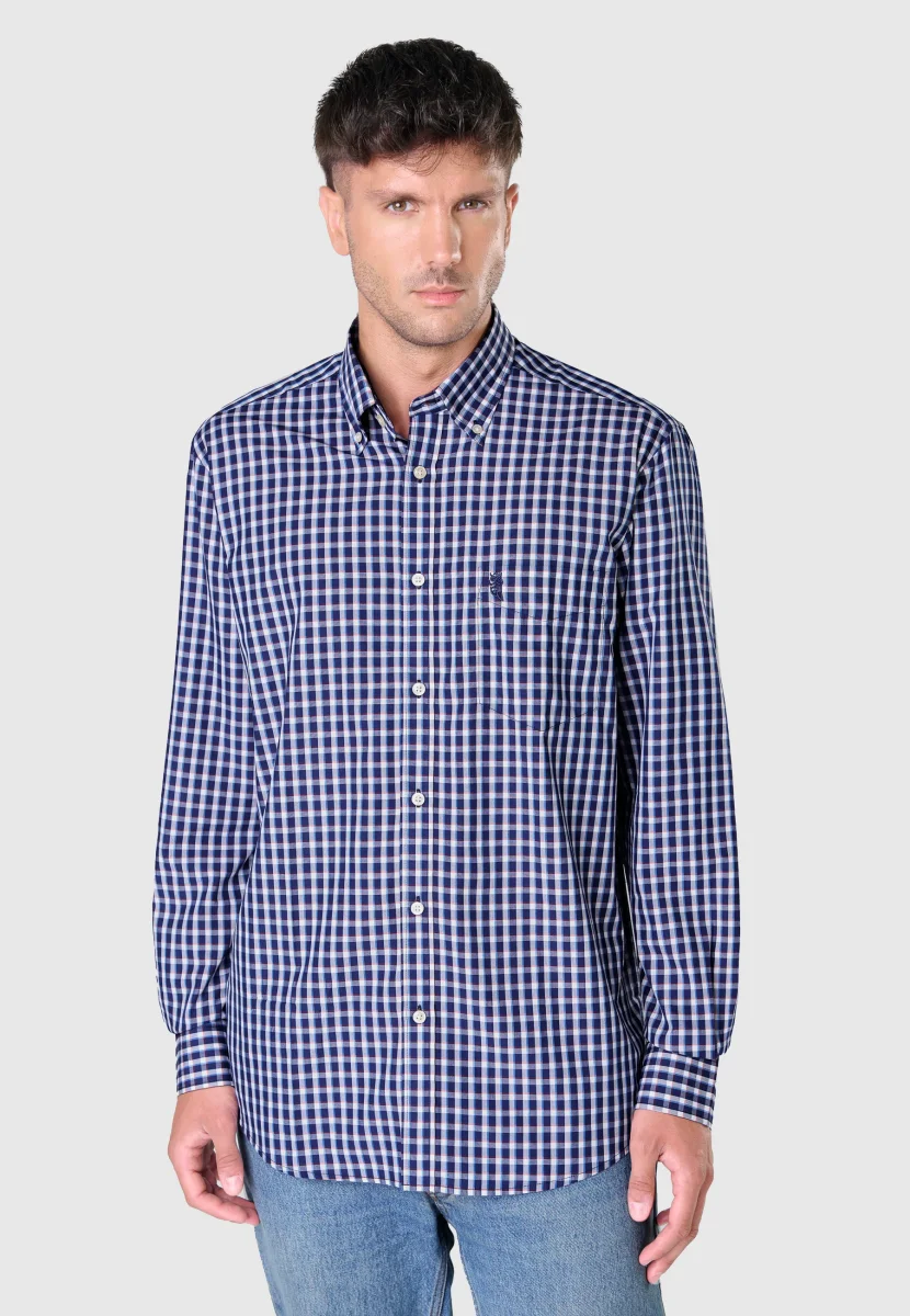 Camisa casual a cuadros de manga larga con bolsillo, 50% Rayón derivado de Bambú y 50% poliéster. Edición « Essentials ». Color azul a cuadros con cuello button down. Logo bordado en el pecho. Camisa indispensable en cualquier armario de caballero, prenda casual que proporciona comodidad, suavidad y confort. Fresca, agradable al tacto y absorbente. Puños con cierre de botón. Esta camisa posee una suavidad sensacional y es de fácil planchado.