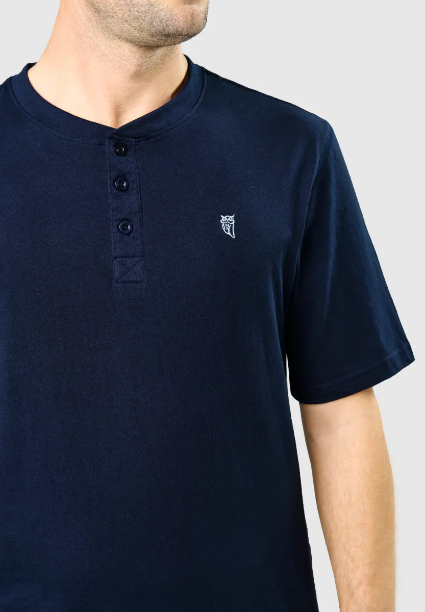 Camiseta básica lisa de manga corta de entretiempo de punto, 100% algodón en 160gr/sqm. Edición « Essentials ». Color celeste con cuello tapeta a tres botones personalizados a juego. Logo bordado en el pecho. Camiseta multiuso, para interior como exterior, que proporciona comodidad, suavidad y confort. Fresca, agradable al tacto y absorbente.