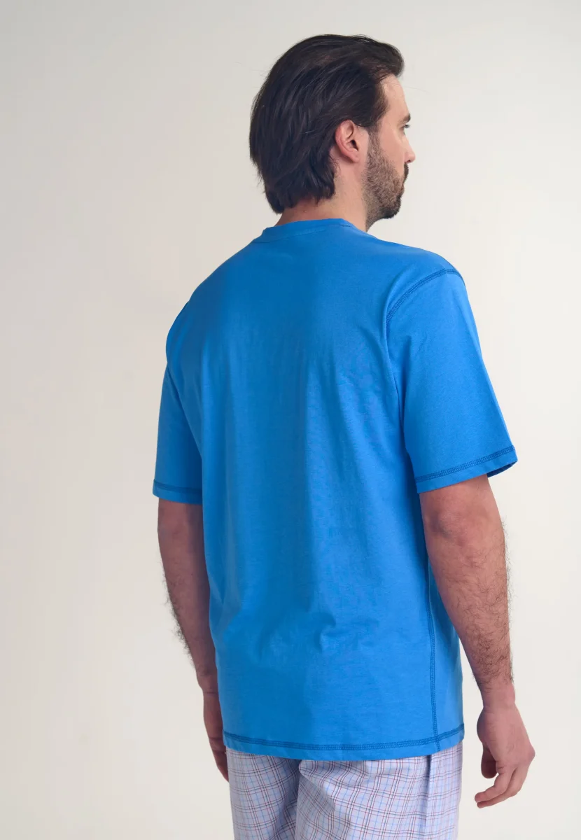Camiseta Pijama Hombre Manga Corta Tapeta Algodón Lisa – Azul 7632_30