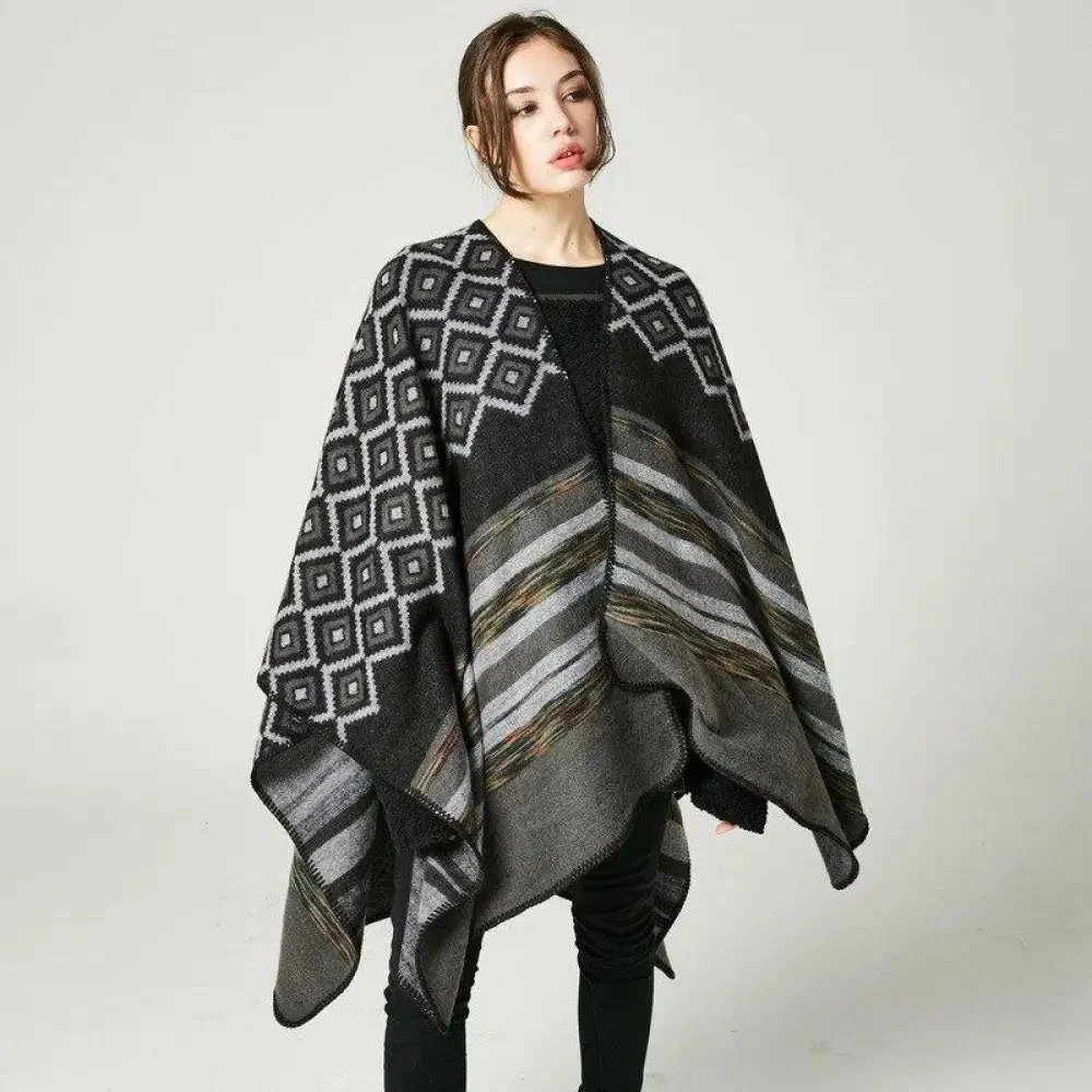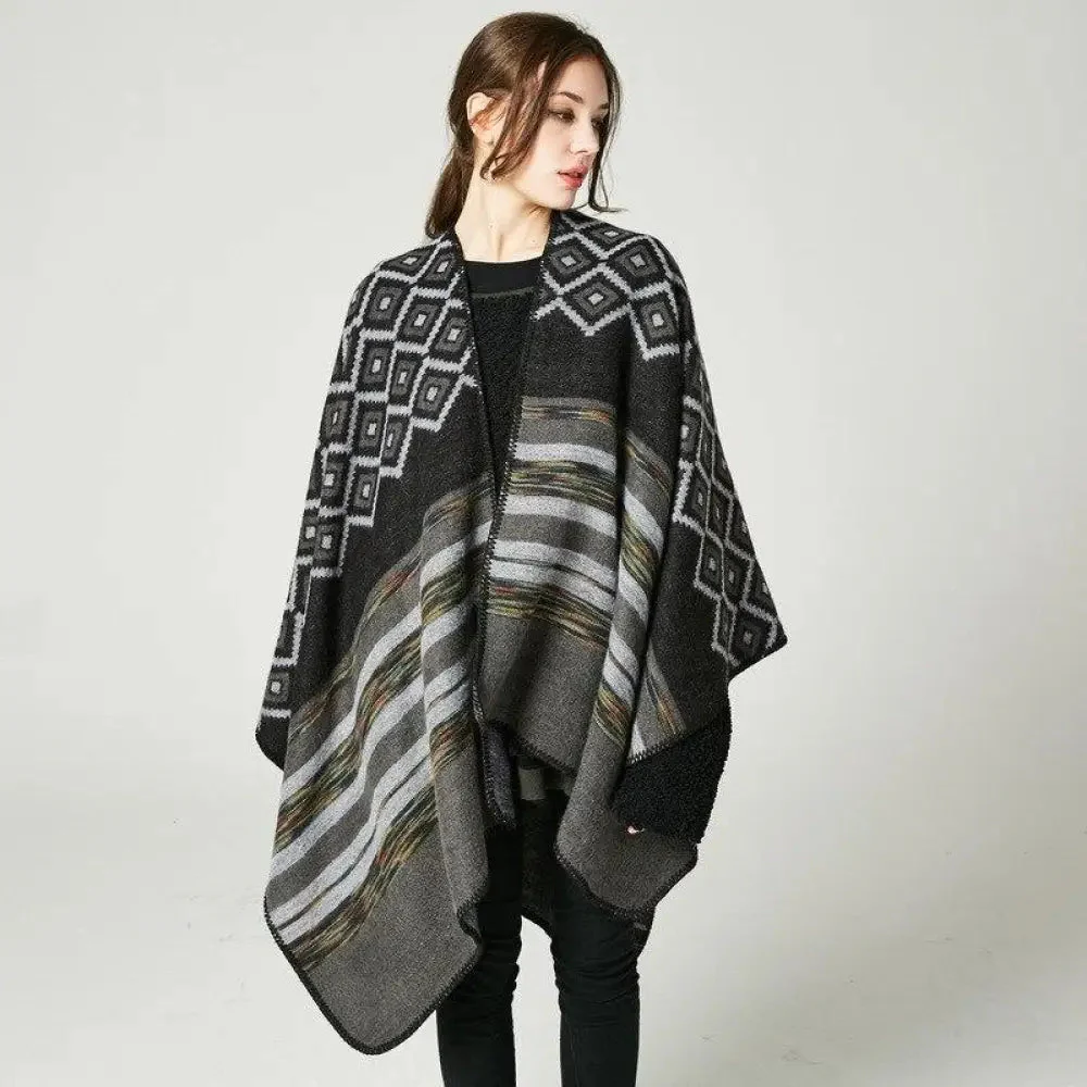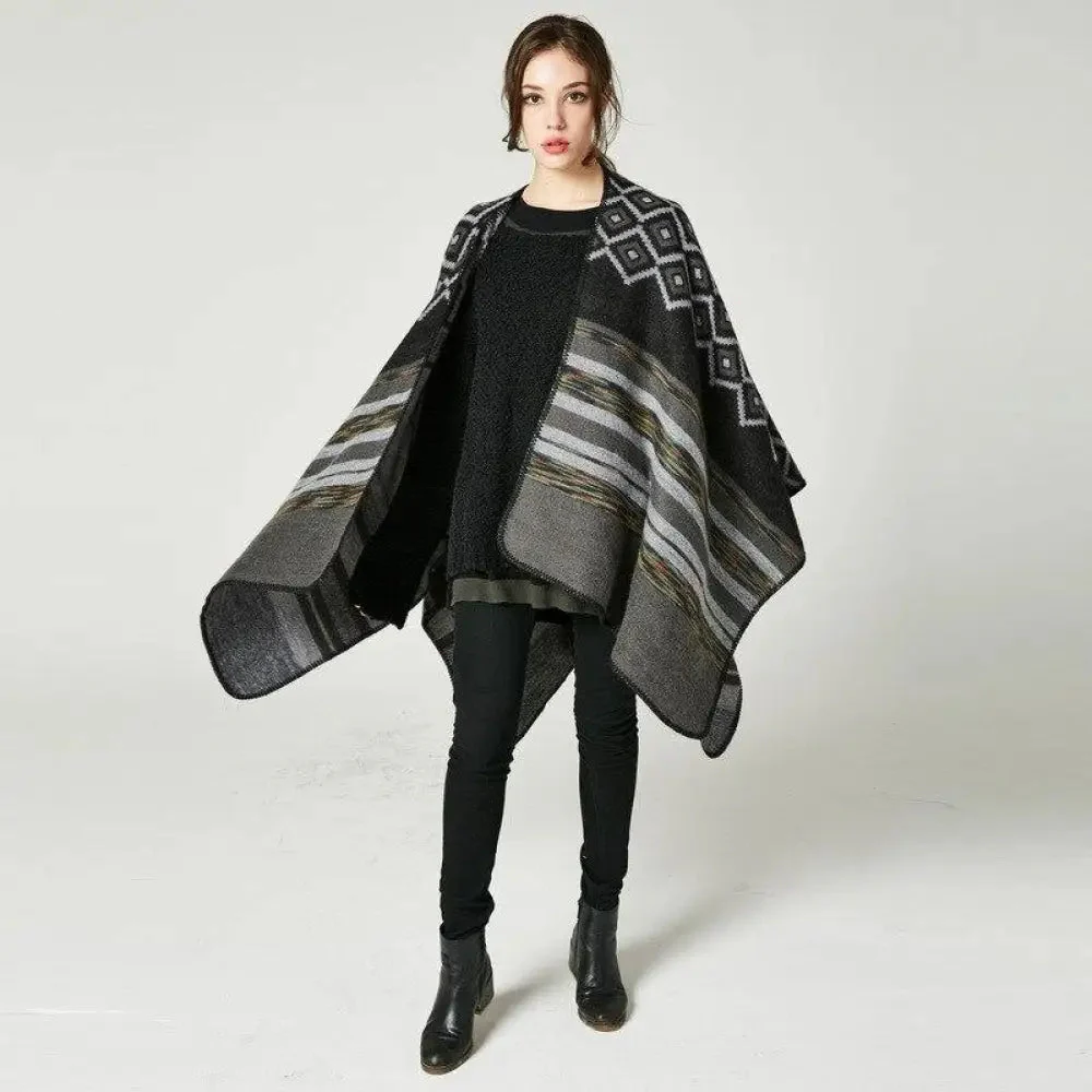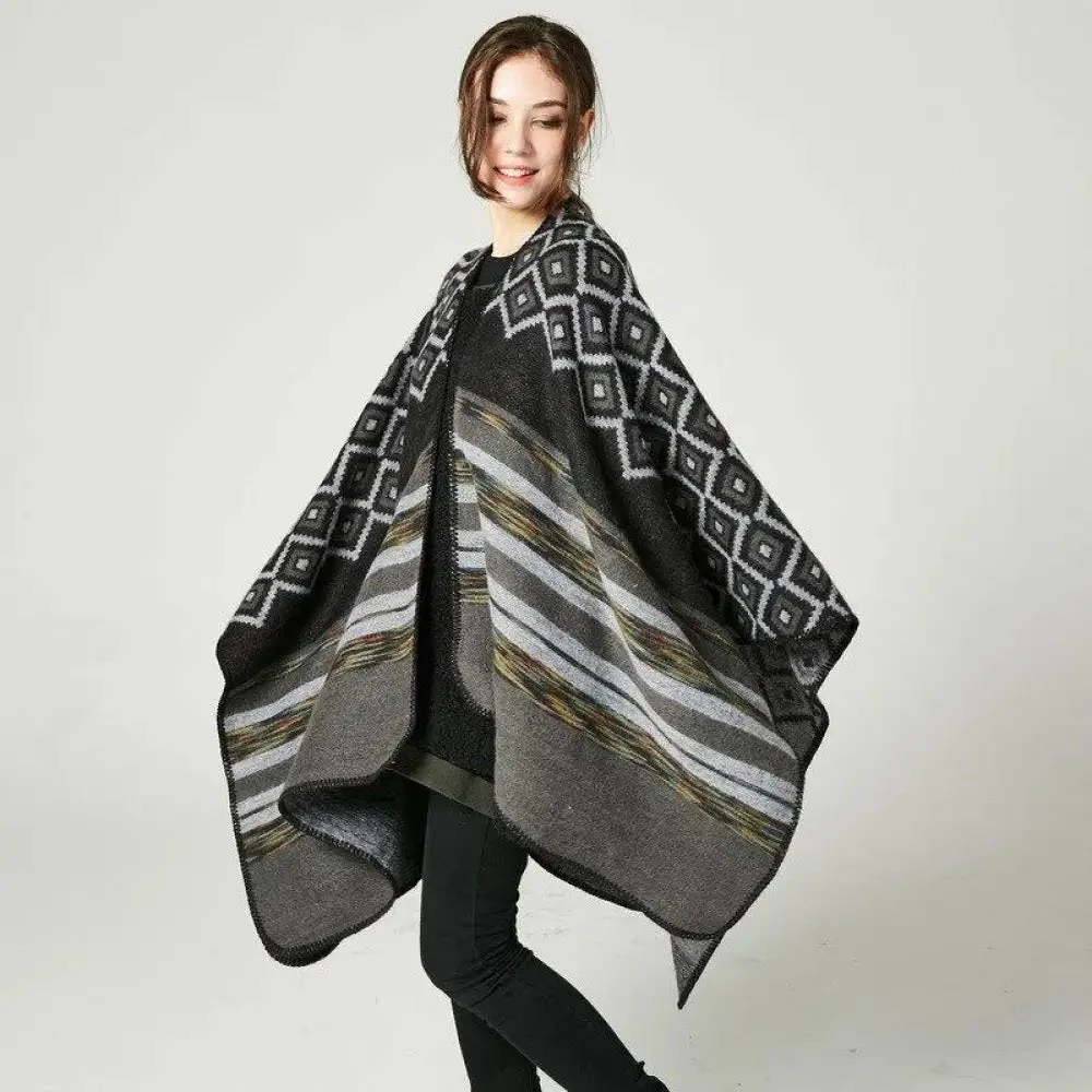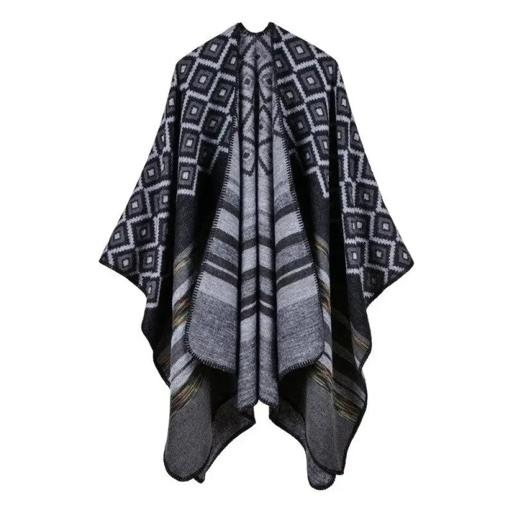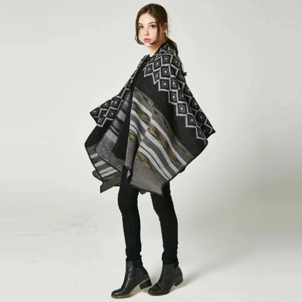 Poncho Châle Élégant Noir et Blanc
