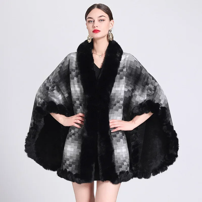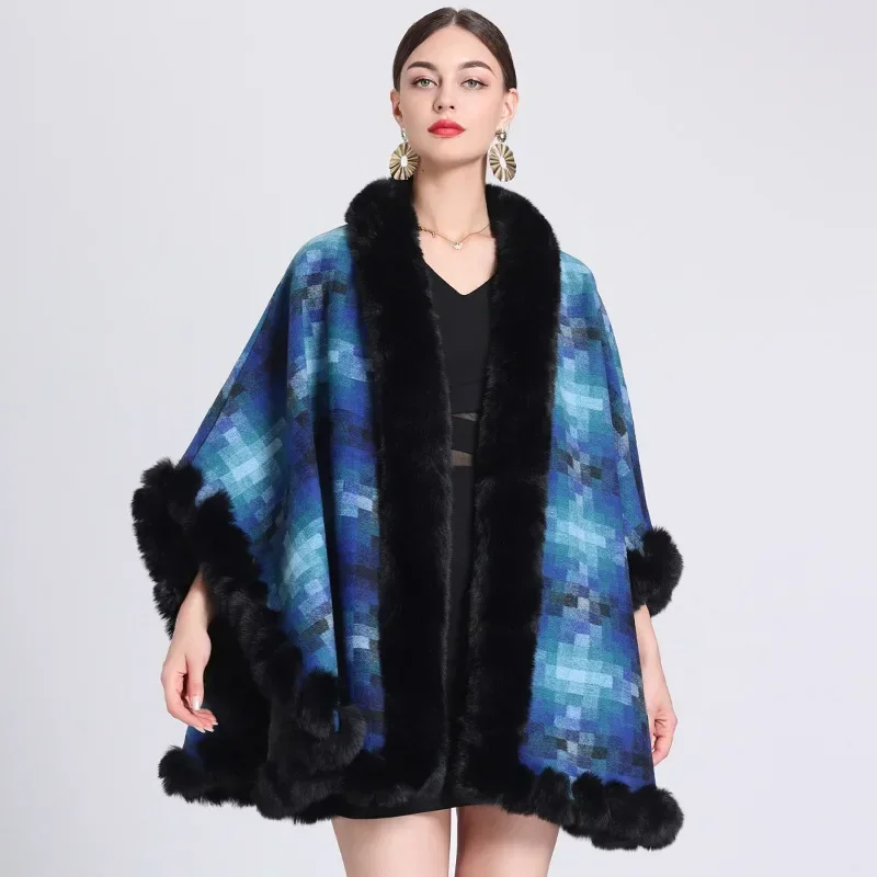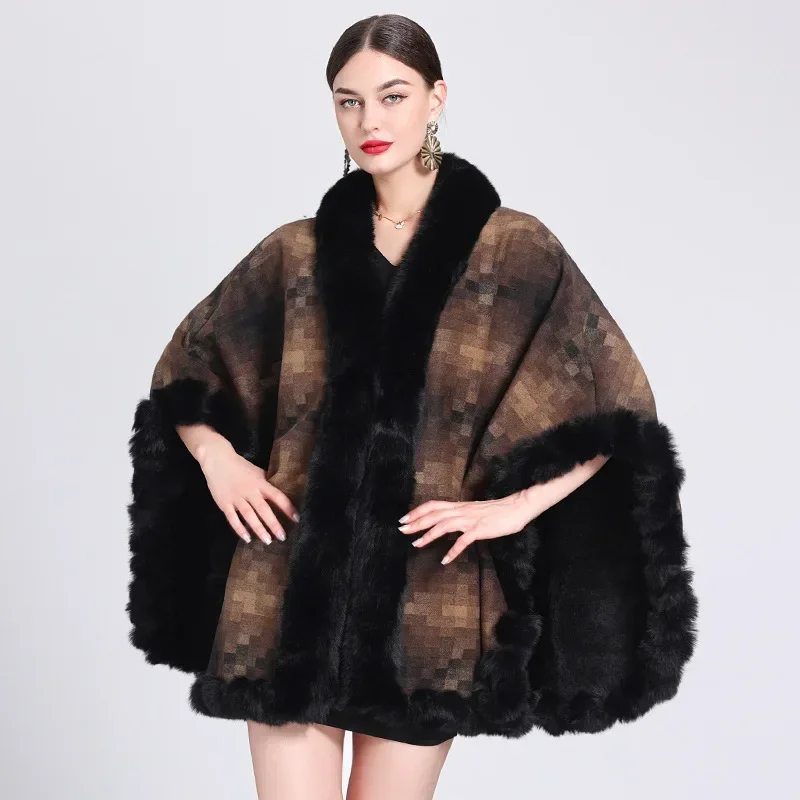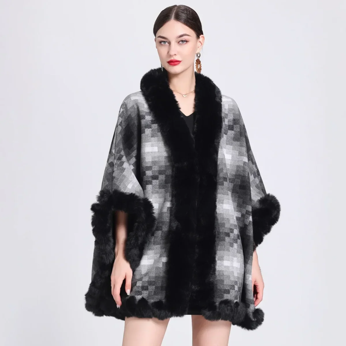 Cette cape en fausse fourrure offre un mariage parfait entre modernité et élégance. Ses motifs géométriques apportent une touche artistique, tandis que le bord en fausse fourrure noire ajoute du luxe à cette pièce. Disponible en plusieurs coloris vibrants et intemporels, elle est idéale pour rehausser une tenue classique ou apporter du dynamisme à votre style quotidien. Chaude et confortable, elle convient parfaitement aux soirées fraîches ou aux occasions spéciales. Ce vêtement allie esthétique et confort pour une allure chic et sophistiquée. Un choix incontournable pour celles qui recherchent style et originalité.