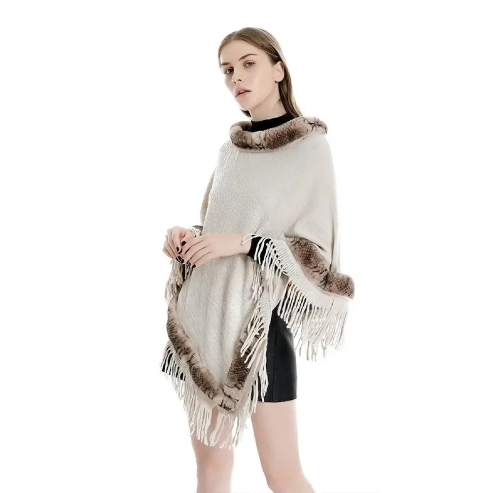 Cape poncho femme fourrure