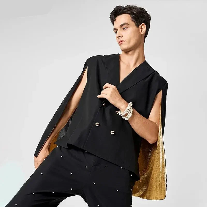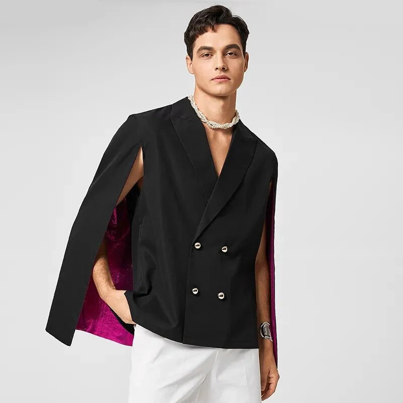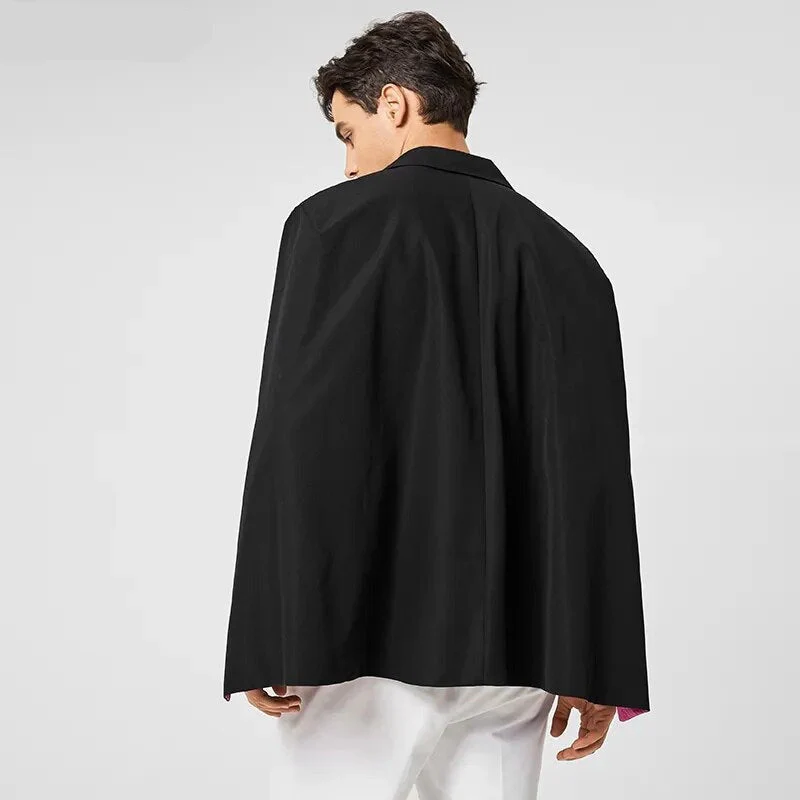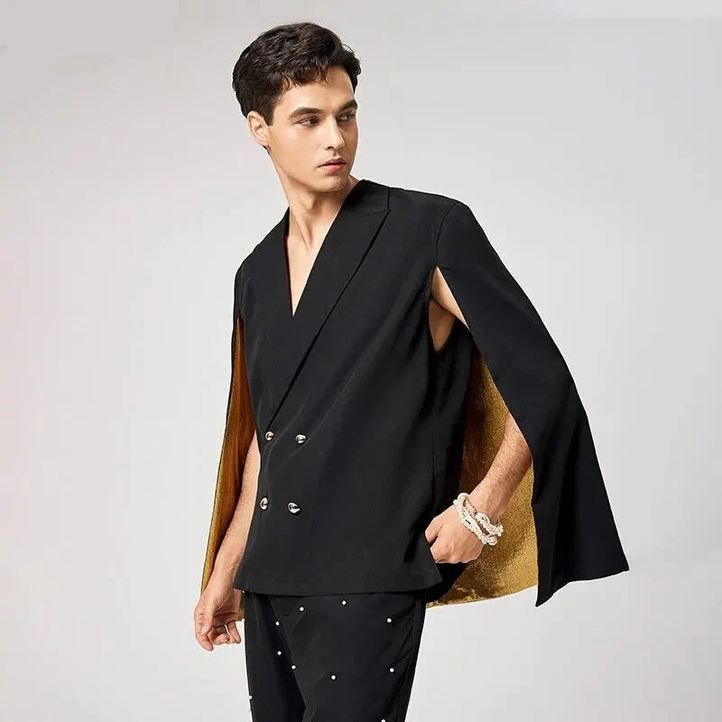 Cette somptueuse cape pour homme se distingue par sa double rangée de boutons à l’avant, son col rabattu et sa doublure luxueuse dorée ou rose. Confectionnée à partir de matériaux d’exception, elle conjugue élégance et confort. Polyvalente, elle se prête à toutes les occasions. Disponible avec une doublure dorée éclatante ou une teinte rose subtile, cette cape apporte une touche d’opulence à votre tenue. Optez pour l’exclusivité et l’élégance avec cette pièce d’exception. Commandez-la dès aujourd’hui pour une sophistication incomparable dans votre garde-robe.