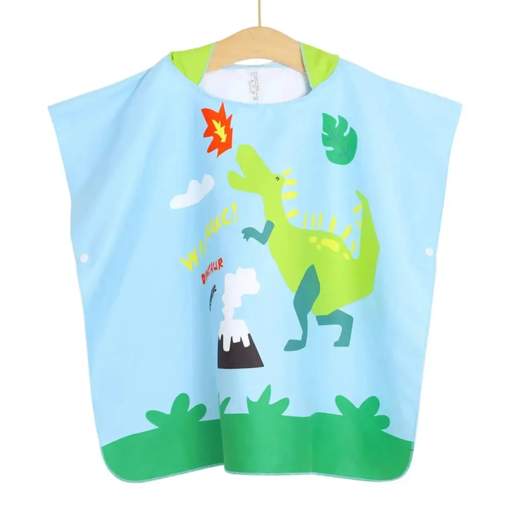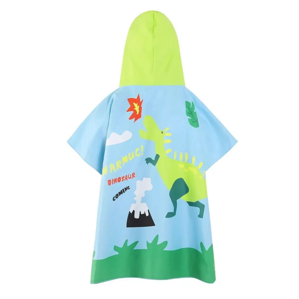 Ce poncho est disponible en bleu avec des modifs dinosaures. Il est fabriqué en coton. Il peut être utilisé comme une cape à manches courtes ou comme une veste à capuche.