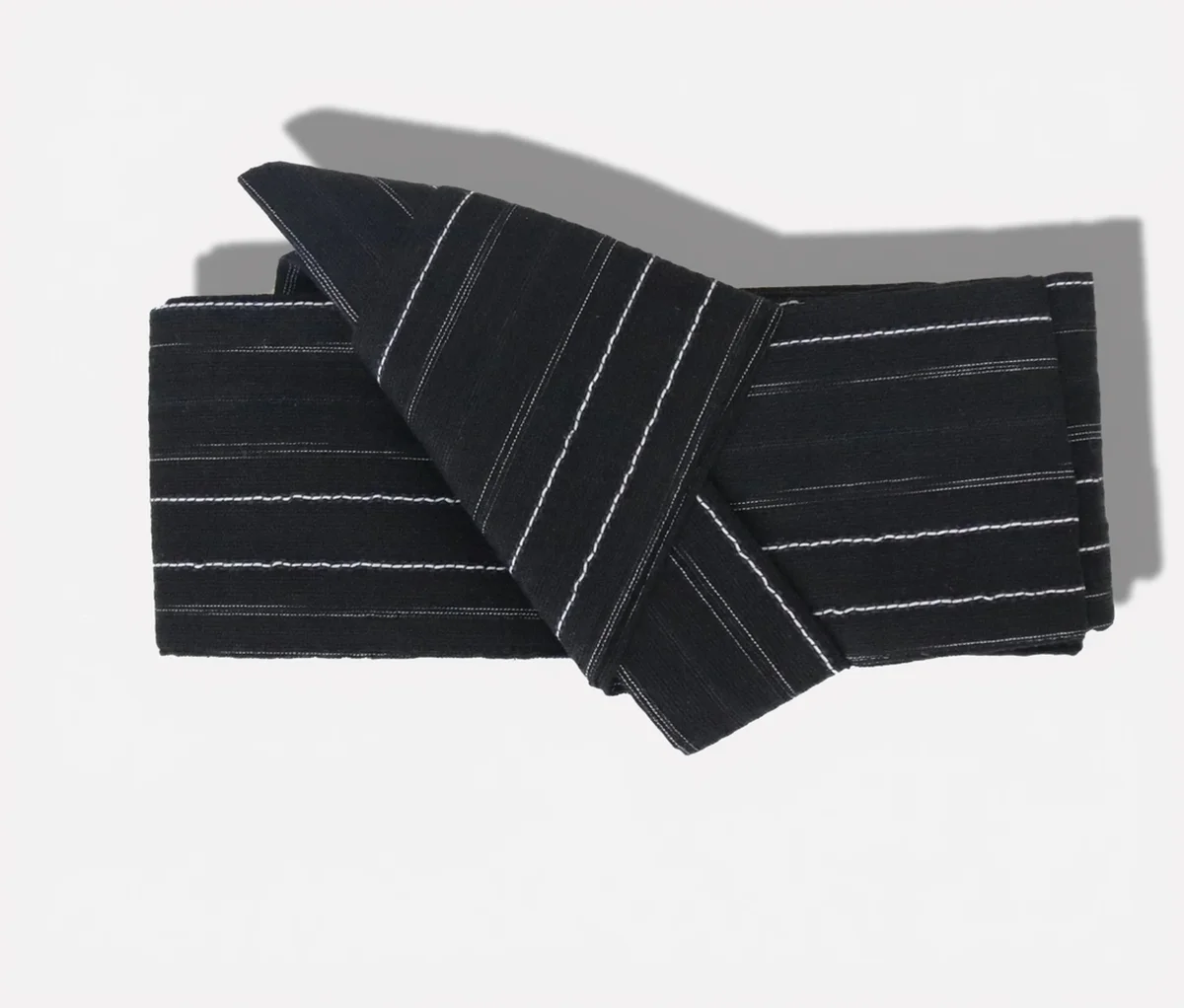 Ceinture Obi Noir à Rayures Blanches – Kimono Japonais