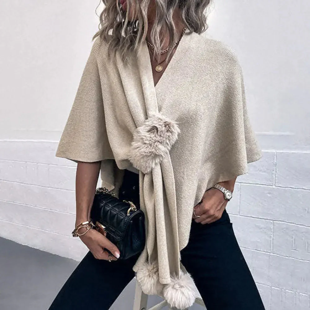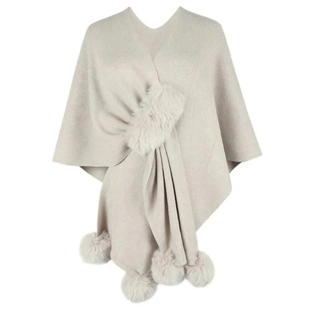 - Détails raffinés : Les pompons ajoutent une dimension ludique et chic à la silhouette traditionnelle du châle.