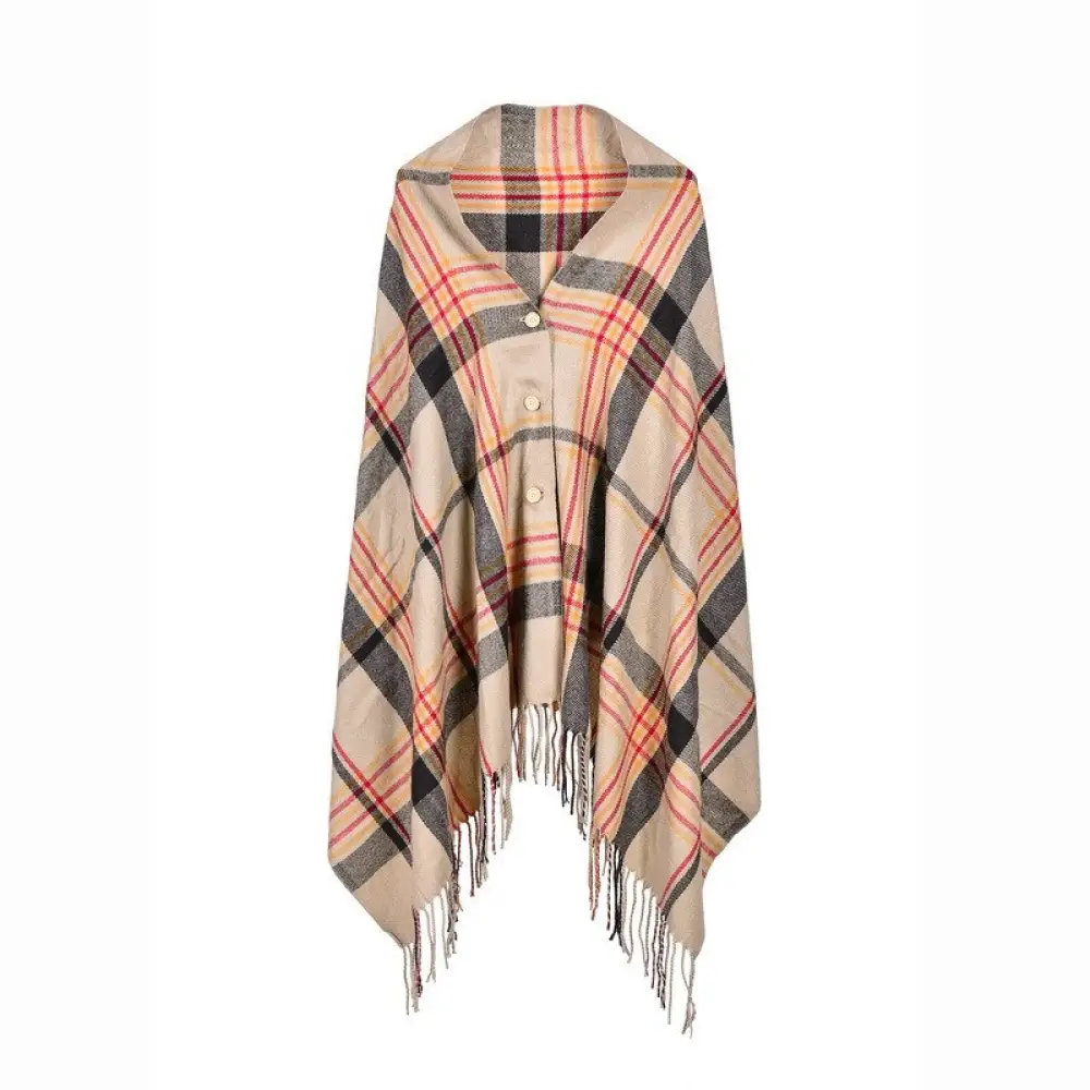 Ce châle ponchos femme laine ici présent est fait pour passer l’hivers. La laine est un tissu parfait pour un poncho. Ce type de tissu est agréable à porter étant donné qu’il est assez léger. Ce poncho possède un imprimé carreau qui reste très tendance au fil des années. Il a un style très intéressant car il se présente comme un châle avec de boutons au-devant. Il peut aussi se porter pour n’importe quelle occasion.