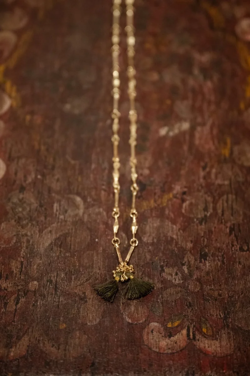 Le Collier Marwari est un collier élégant et fin, fait de laiton et orné d’un pompon coloré en fil de coton. Avec ses 110 cm, il offre un look sophistiqué et adaptable pour toutes vos occasions. Son design raffiné s’accordera avec toutes vos tenues !
