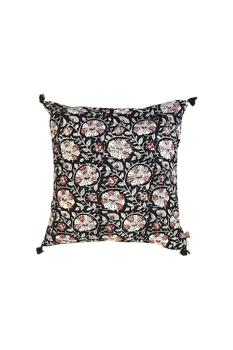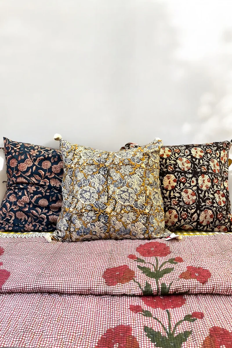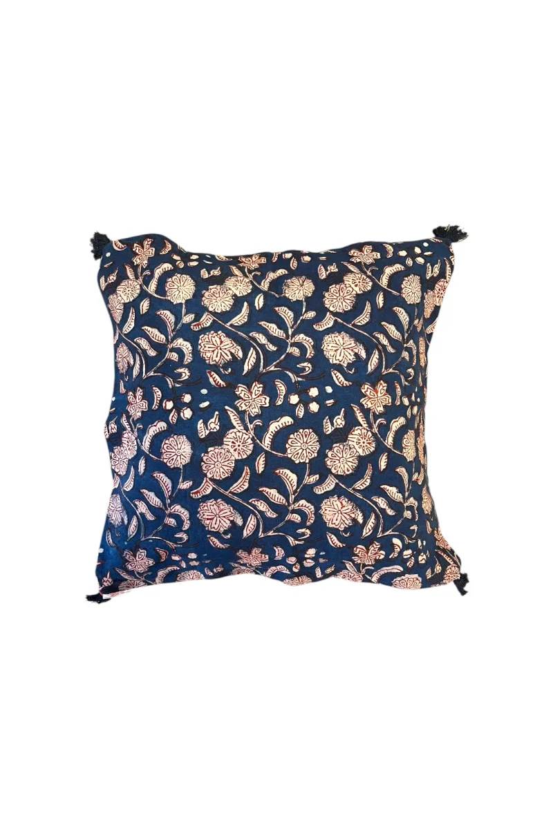 Nos housses de coussins sont en 100% coton, imprimées au bloc de bois à la main.