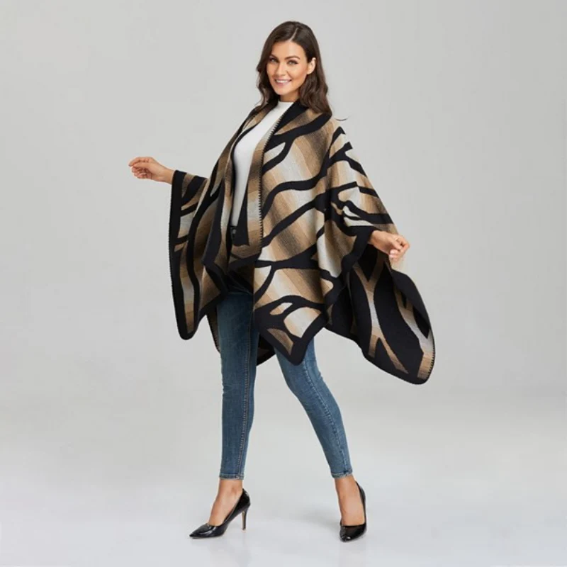 Ce poncho est conçu pour les femmes modernes et élégantes, celles qui n’ont pas froid aux yeux ! Le design sauvage de cette cape vous donnera une allure confiante à l’instant même où vous la mettrez sur vos épaules. Très agréable à porter, cet habit d’hiver pratique et tendance vous réchauffera avec douceur pendant toutes vos activités hivernales. Qu’attendez-vous pour vous faire plaisir ?