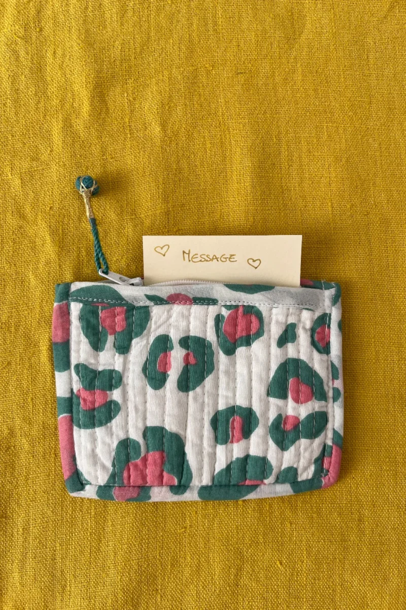 Compact et plein de charme, ce mini porte-monnaie matelassé se glisse partout. Son imprimé block print en fait un petit accessoire unique, tandis que sa fermeture zippée permet de garder monnaie et petits essentiels en toute sécurité.
