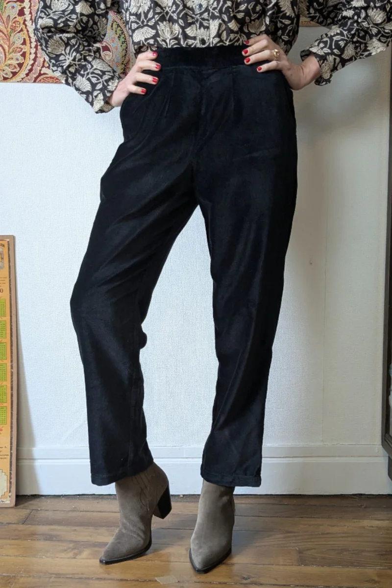 Ce pantalon en velours au toucher soyeux apporte immédiatement une note précieuse à votre look. Idéal pour les fêtes comme pour vos tenues du quotidien, il allie élégance et confort.