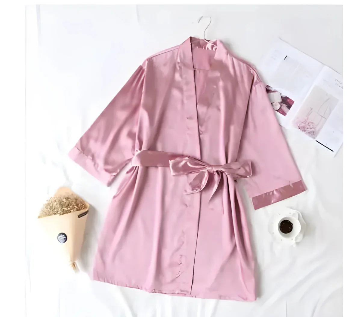 Peignoir Court Rose Satin Kimono Femme Été Élégant