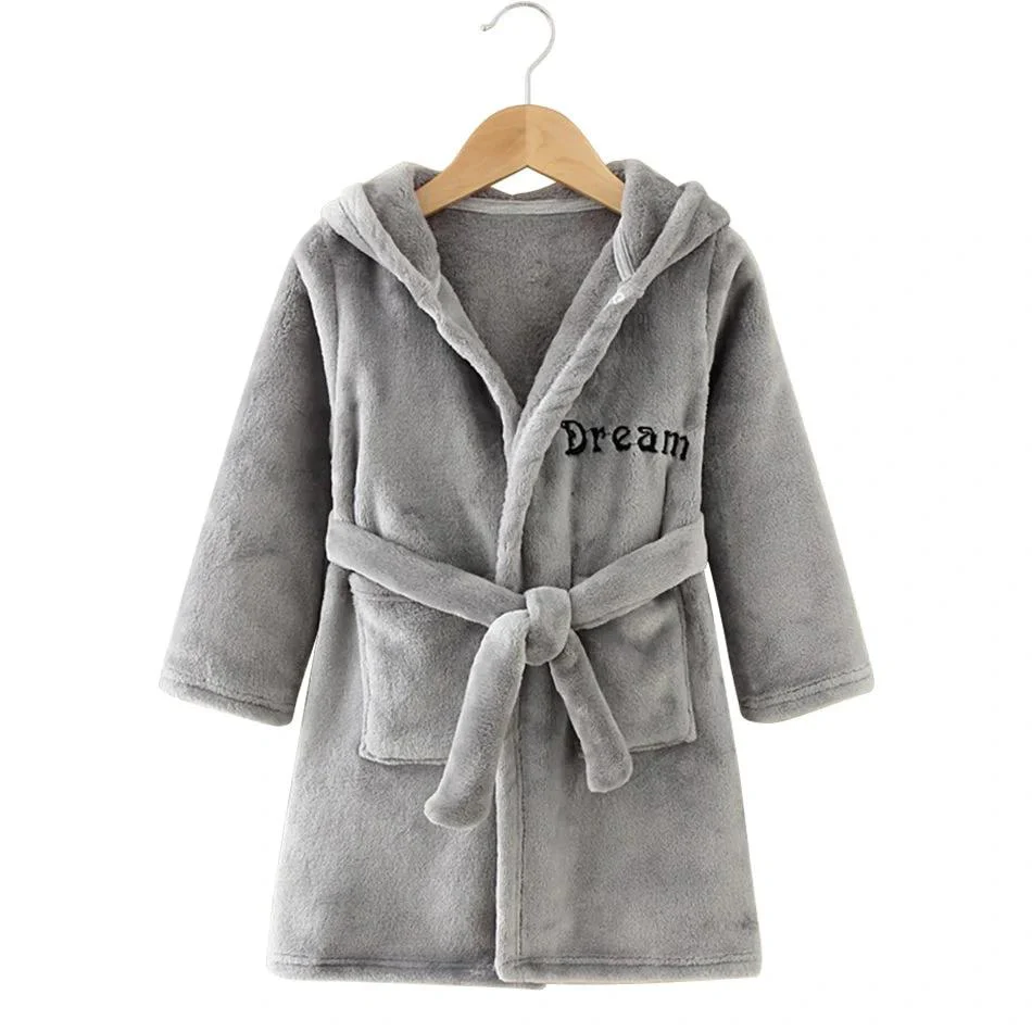 Peignoir Enfant Gris à Capuche en Polaire Dream