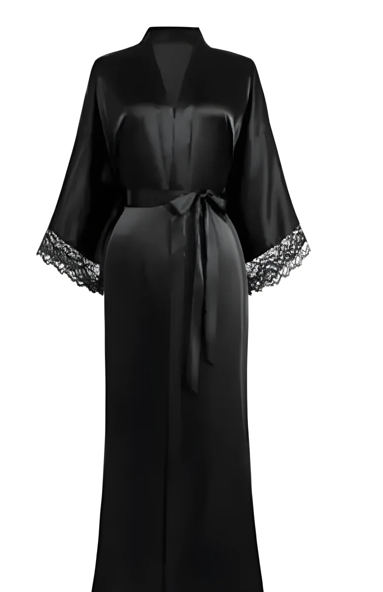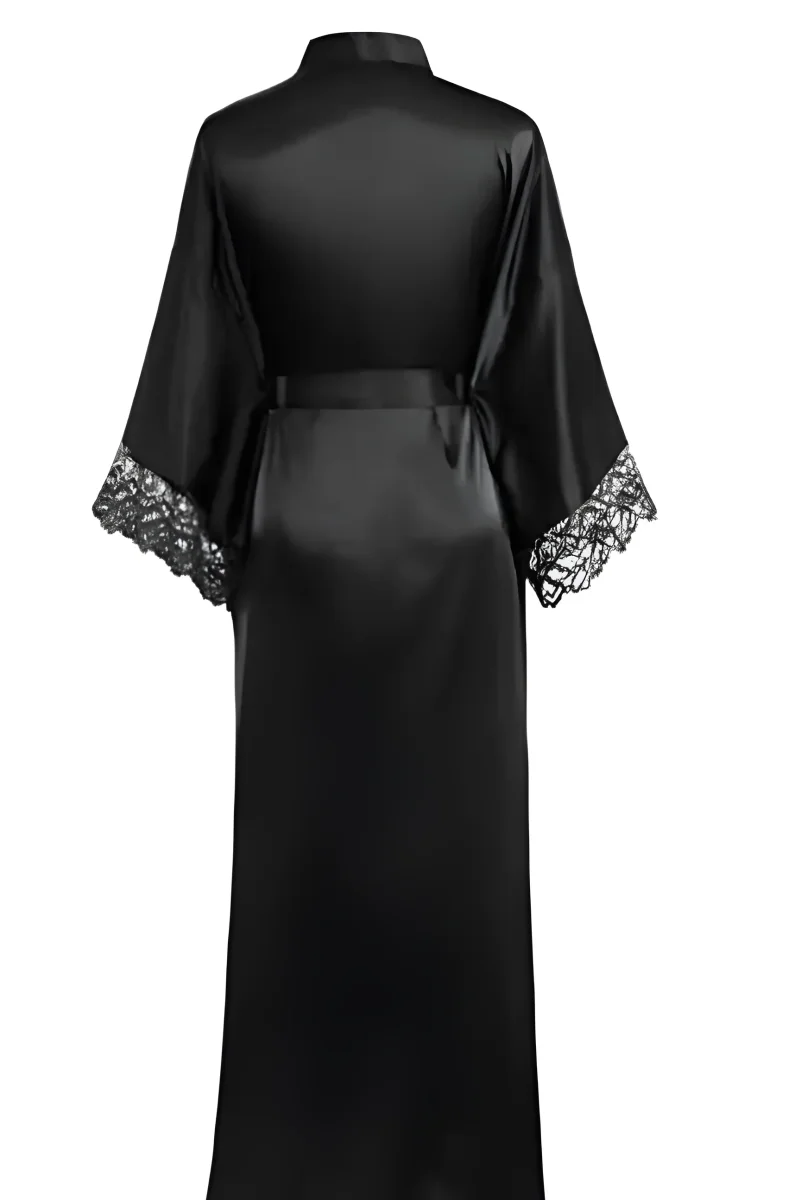 Peignoir Kimono Noir Satin Dentelle Femme