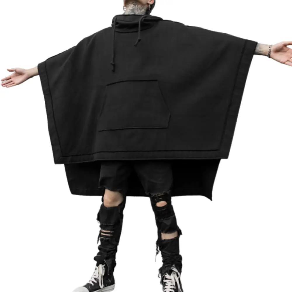- Style urbain et audacieux : Poncho noir oversize, idéal pour un look streetwear moderne et original