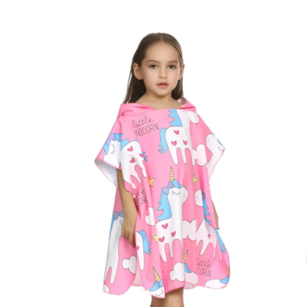 Ce Poncho bain enfant confection est un nouveau type de vêtement pour enfants. Il est fabriqué en polyester et en fibre polyamide, possède une grande capuche, qui protège la tête des enfants des coups de soleil et des petits insectes. Le design est simple, mais très mignon. La capuche est décorée de licornes, de sorte que votre enfant ne sera pas seulement protégé contre les intempéries.