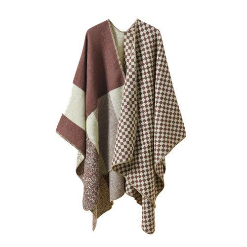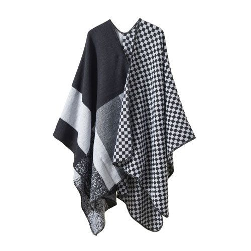 Poncho réversible à Carreaux en Cachemire