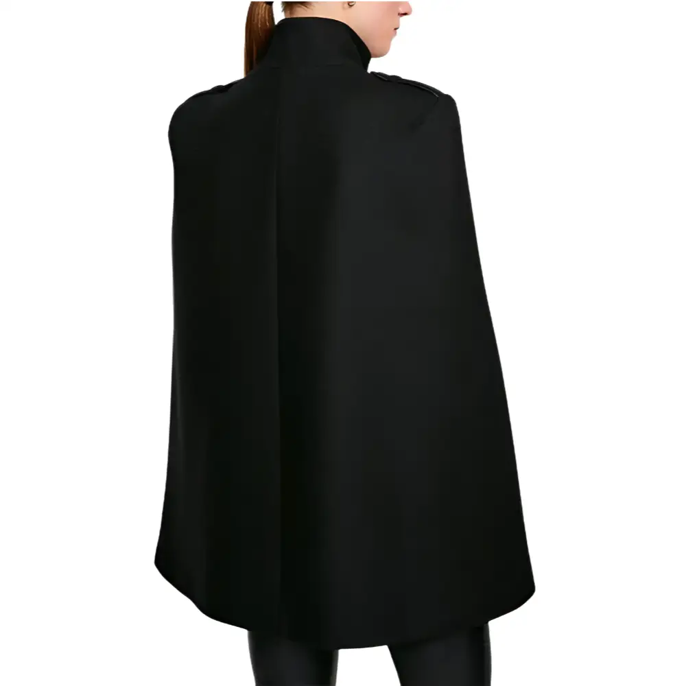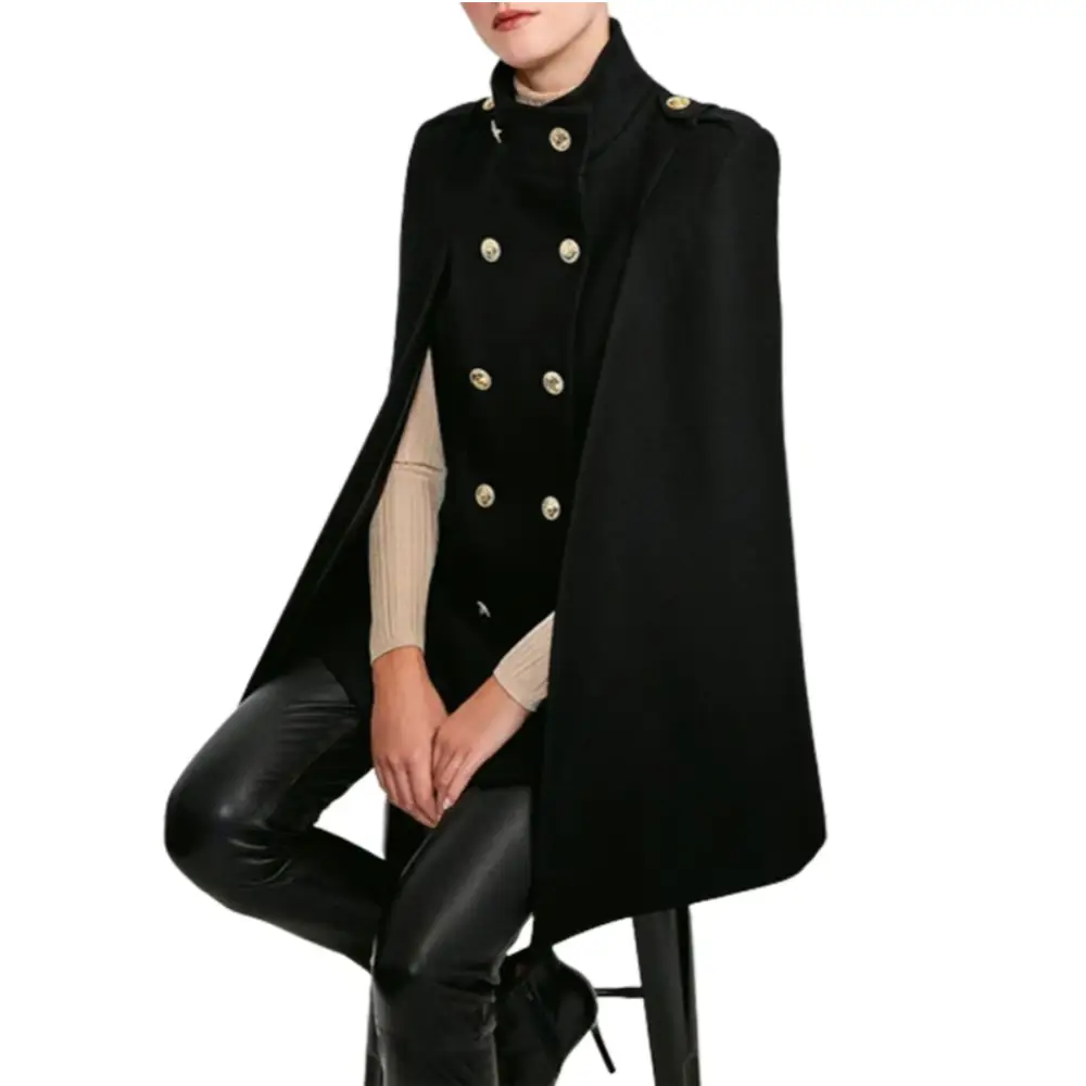 - Élégance militaire : Poncho cape avec double rangée de boutons dorés pour un look sophistiqué et structuré