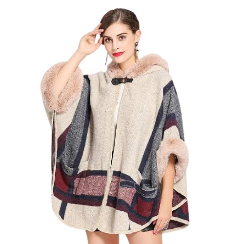 Vêtement disponible pour les femmes de tous âges, ce modèle a été pensé pour vous permettre de lutter contre le vent et le froid. Doté d’une capuche bordée de fourrure, la pluie et le mauvais temps ne seront plus qu’un mauvais souvenir. Une petite fermeture est mise à votre disposition afin de transformer votre poncho en une superbe cape dès que vous le souhaitez. De quoi alterner entre les styles dès que cela vous chante, ou s’offrir un peu de fraîcheur quand la température devient trop élevée.