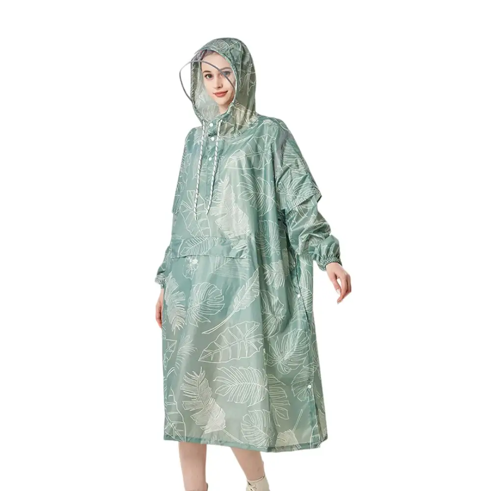 Le poncho de pluie est un vêtement pratique et confortable, qui est disponible en différentes couleurs vert et bleu. Lorsque la pluie menace ou qu’il tombe vraiment, le poncho de pluie est le meilleur choix. Il offre une couche imperméable douce et souple pour vous protéger contre la pluie et le vent tout en comblant votre style.