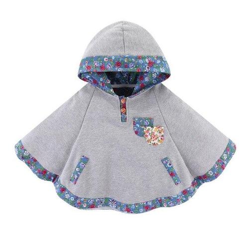 Ce poncho en coton protègera votre bébé du temps frais lors de vos sorties en extérieurs. Au printemps ou en automne, lors des douces journées de mi-saisons, ou bien au début de l’hiver, ce modèle sera parfait. Cette pièce deviendra l’accessoire dont votre enfant ne se passera plus ! Pratique et confortable, il sera parfait pour ses journées d’écoles, il parviendra parfaitement à le mettre seul, comme un pull ! Il est plus simple à enfiler qu’un manteau. Ses motifs fleuris, apporte une touche d’originalité à ce poncho. Cet habit est doté d’une capuche, qui protègera au mieux la tête de votre enfant quand il y’aura du vent par exemple. Disponible en deux coloris différents de teinte neutre et sobre, choisissez le modèle qui vous plaît le plus !