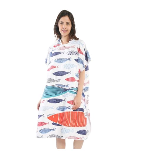 Le poncho de bain femme existe en plusieurs motifs, semblable à une serviette de plage sur certains aspects. Cet accessoire vous permet un changement rapide et discret, à l’abri des regards. De plus en plus utilisé pour ses nombreux avantages comparés à une serviette banale, ce type de poncho de bain est très doux et facile à transporter grâce à son petit sac de transport que vous pourrez glisser dans un sac à dos ou une valise.