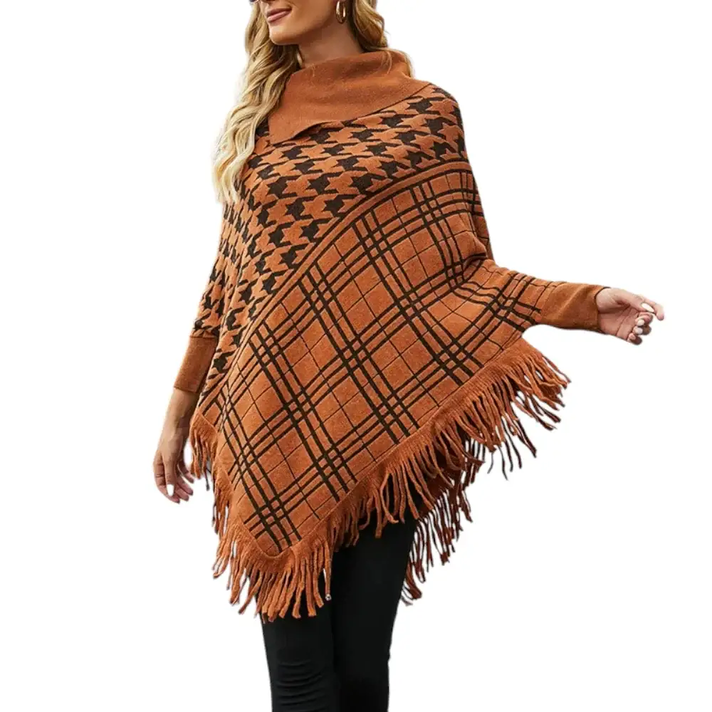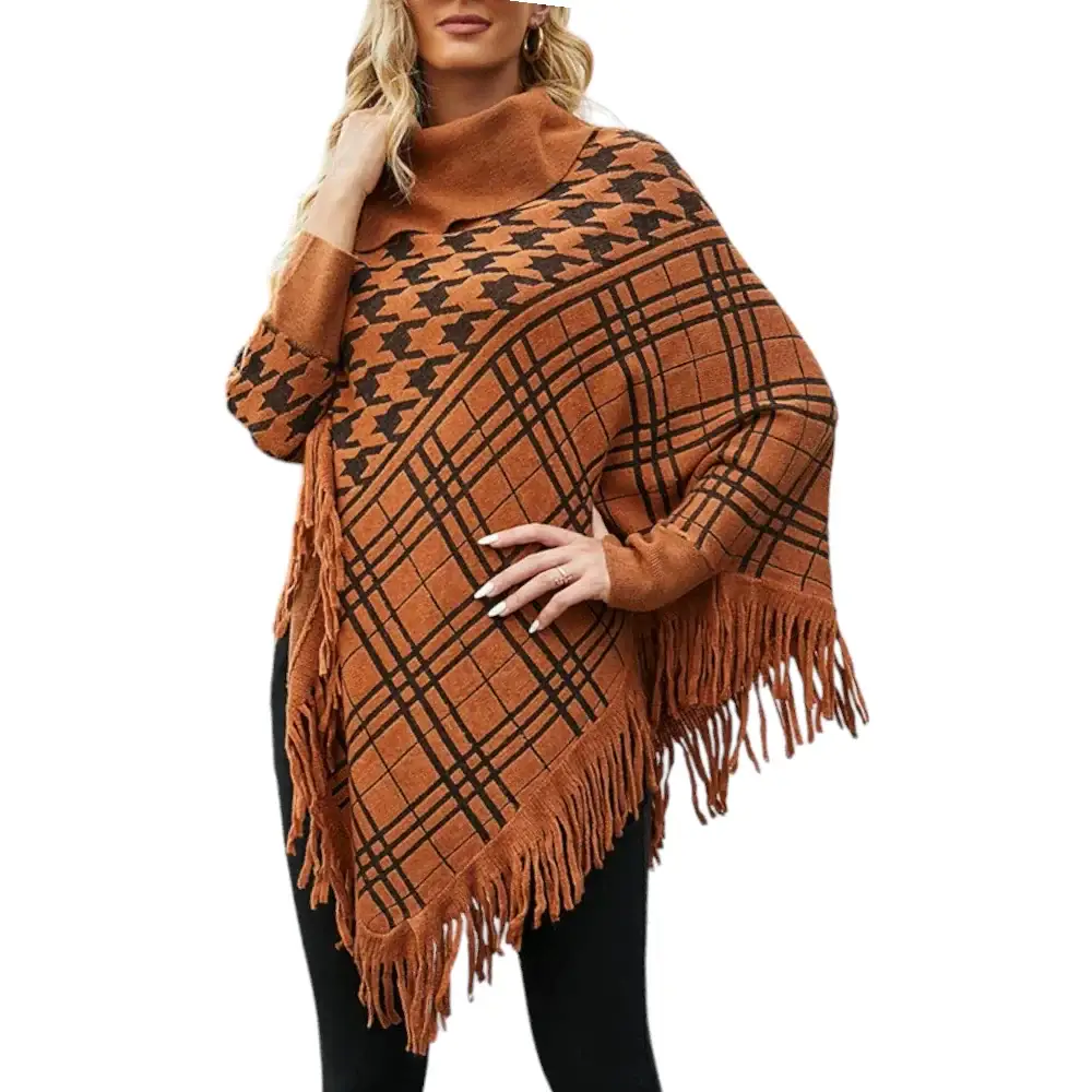 Le poncho de femme tricot offre chaleur et confort. Fabriquées en acrylique, nos ponchos sont élégants et modernes, parfaits pour tous les styles et tailles américaines et européennes. La forme à col haut offre une couverture maximale et ajoute une touche subtile à vos ensembles. Vous pouvez porter ce poncho tricoté pour femme avec vos tenues préférées.