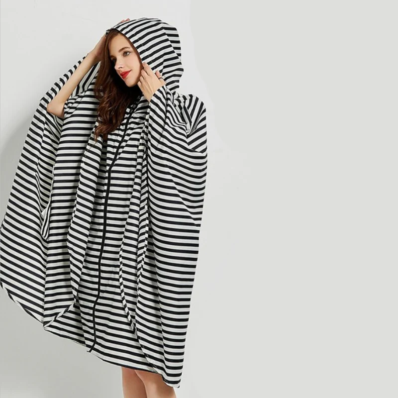 Poncho de pluie pour femme rayures noires et blanches