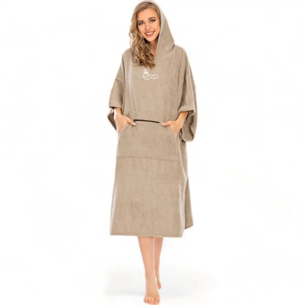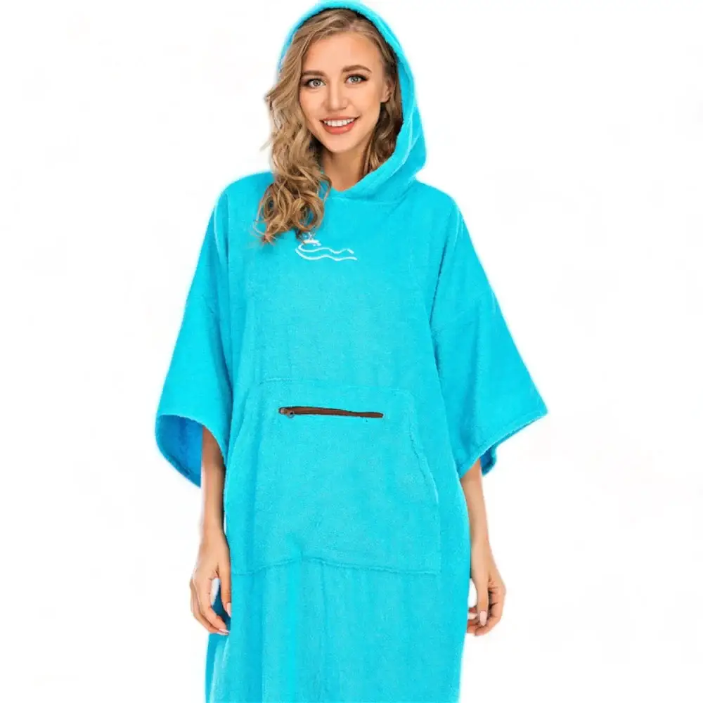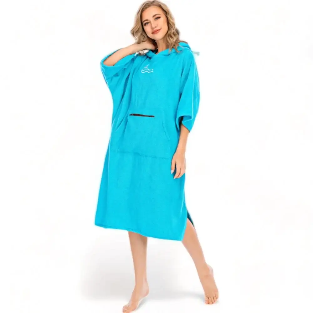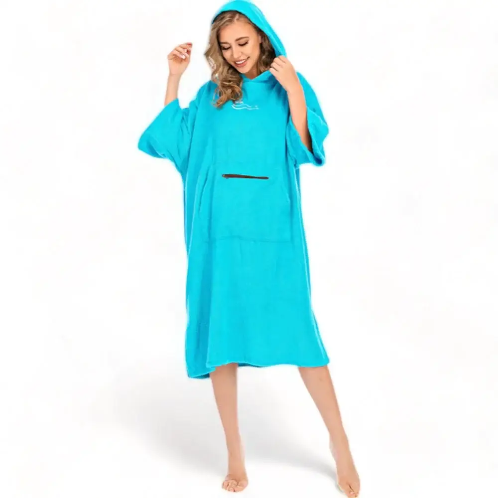 Le Poncho de surf couleur femme est un modèle de peignoir de bain à capuche pour divers sports aquatiques. C’est un vêtement léger, une serviette à langer ou encore une combinaison à capuche 100% polyester. Il est super doux pour la peau ce qui le rend super confortable à porter. Il possède une grande absorption d’eau et teinture rapide, il pourra vous garder bien au chaud et sec après le surf, la natation, la voile ou d’autres sports nautiques.