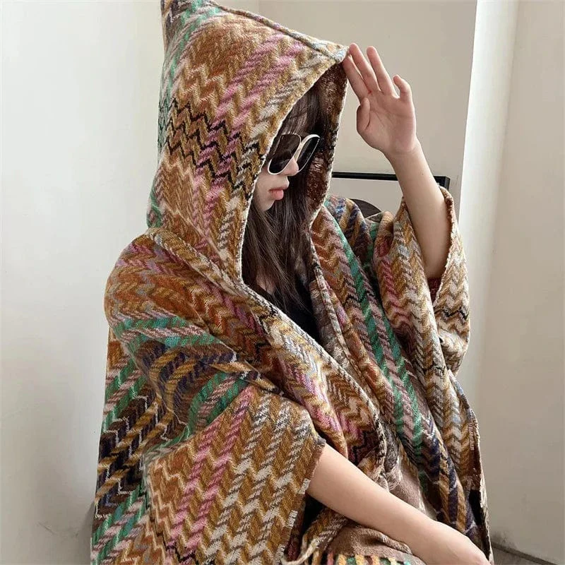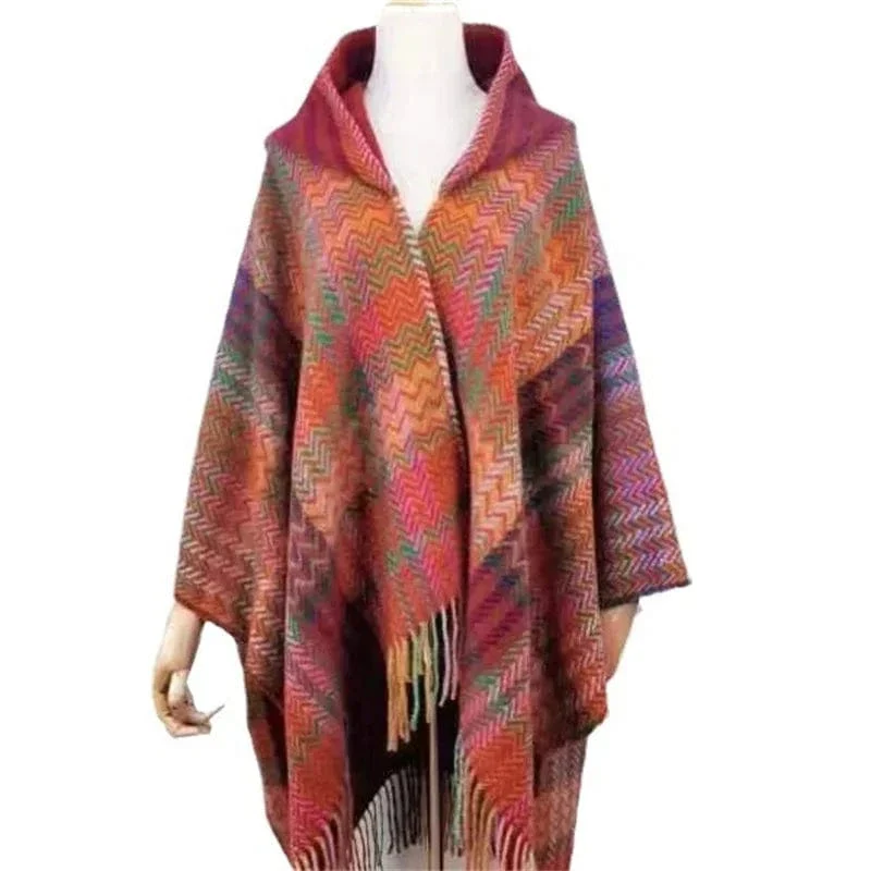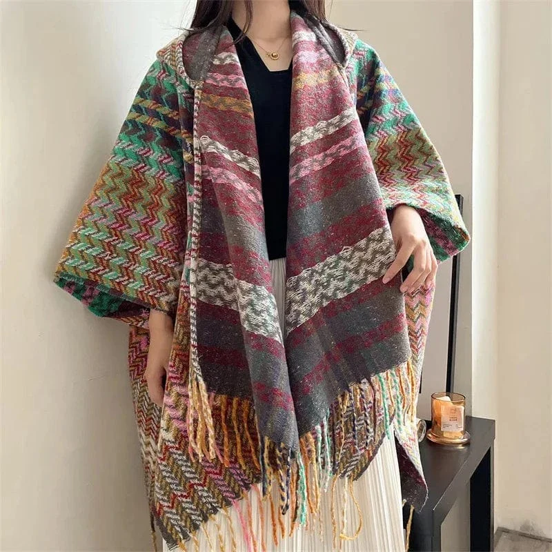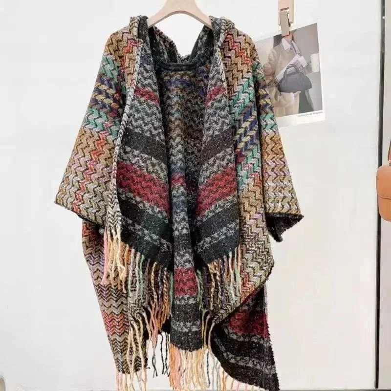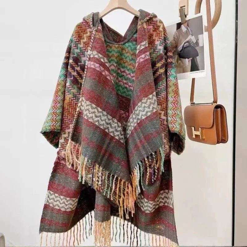 - Caractéristiques : Motifs vibrants, franges décoratives, capuche pratique.