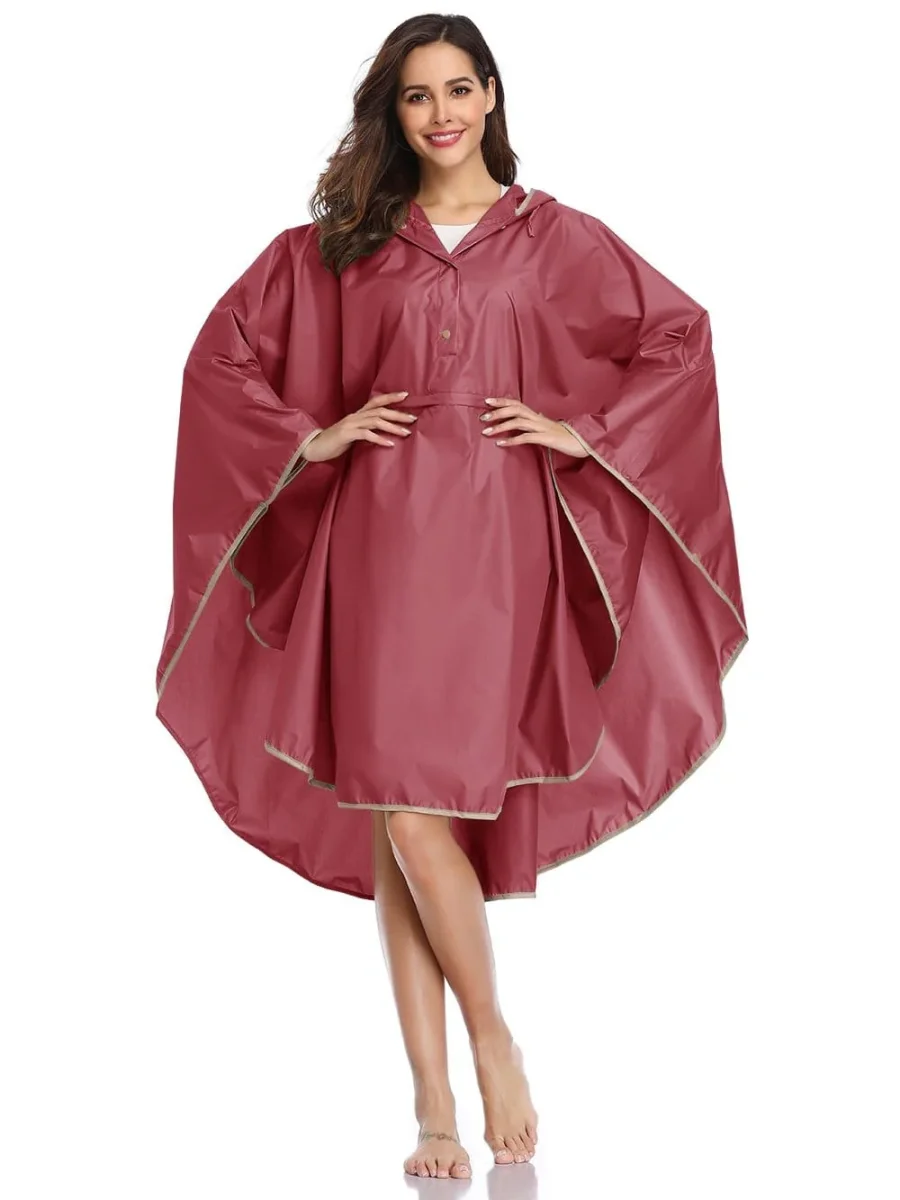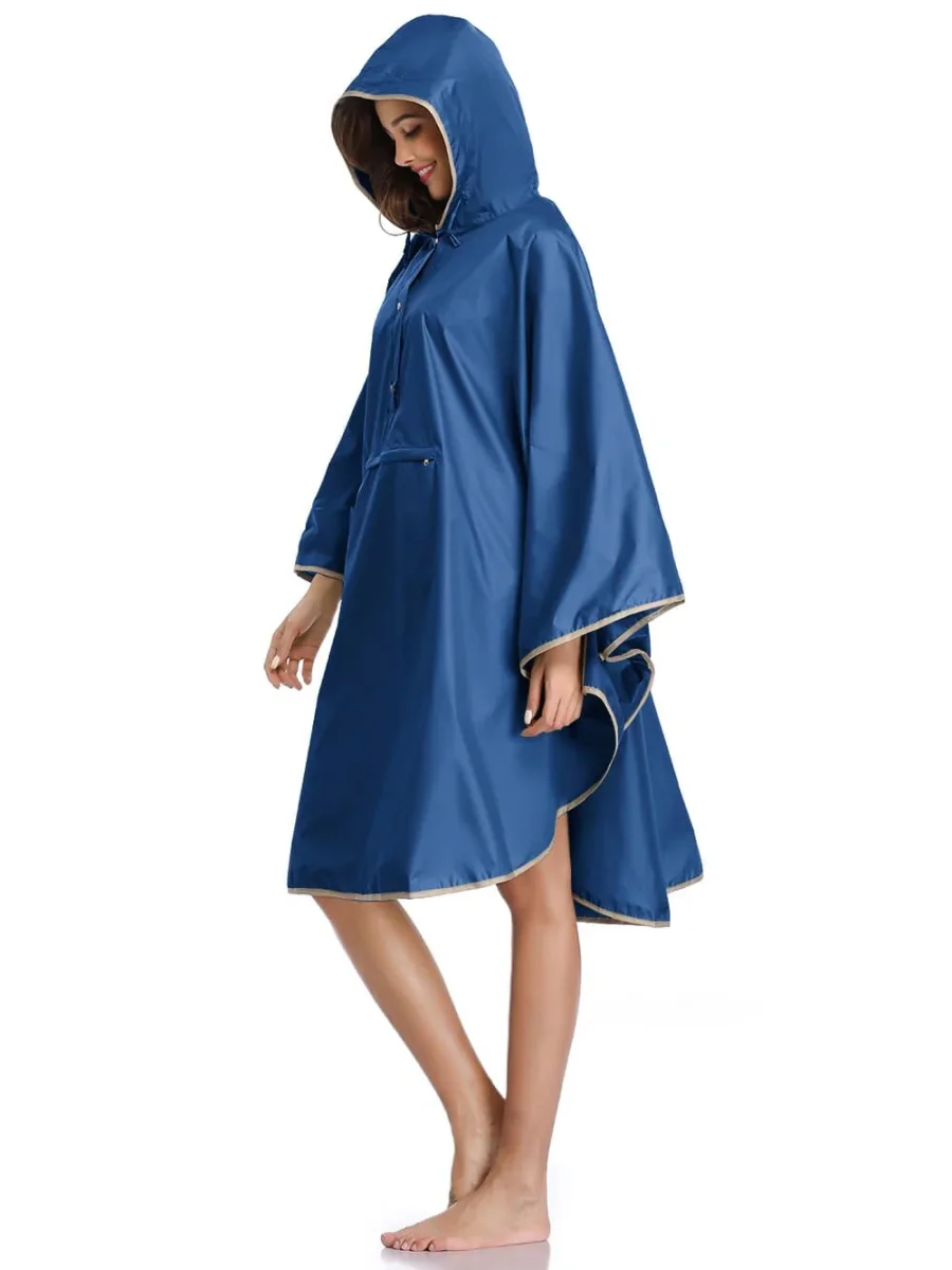 Le poncho femme pour la pluie présente de nombreux atouts avec celui d’être parfaitement imperméable et étanche évidemment. Sa capuche peut être ajustée à l’aide d’un cordon de serrage élastique afin d’éviter que l’eau ne s’infiltre lors des jours où le vent nous mène la vie rude. Les boutons pressions sur les côtés permettront de resserrer le poncho pluie femme pour vous assurer de rester au sec sans avoir peur que l’habit se soulève lors de violentes bourrasques.
