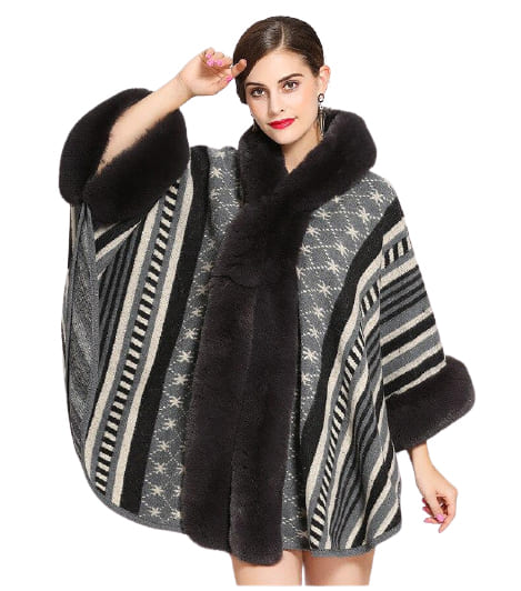 La popularité du poncho ne cessant de grandir à travers les podiums, de nombreux modèles ont ainsi vu le jour pour une utilisation plus sophistiquée. Vous retrouverez dans le poncho femme tendance les codes vestimentaires en vogue de ces dernières années pour les temps frais. Véritable habit de mode et accessoire exceptionnel pour révéler une féminité assumée, il restera cependant très appréciable à revêtir doté de sa fourrure en bordure et manches qui ne manqueront pas de vous apporter du volume sur le haut de corps. Cela vous permettra de vêtir un pantalon moulant ou jupe afin d’obtenir une tenue équilibrée chic et sexy. Il sera un poncho femme idéal pour les occasions et sorties dans lesquelles vous souhaitez afficher un style élégant et raffiné tout en vous isolant des températures agressives externes.