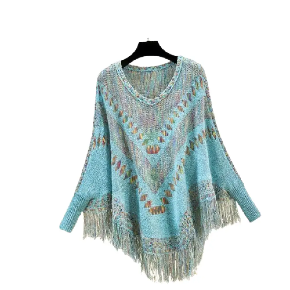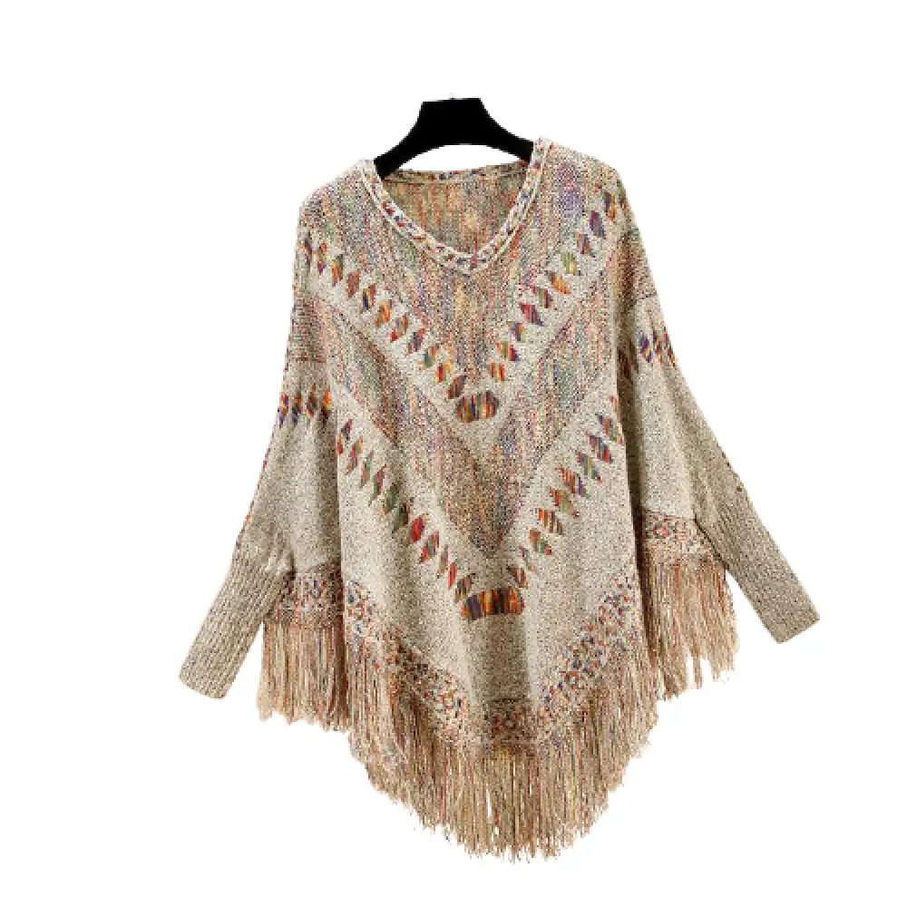 • Style bohème avec franges : Poncho tricoté en 100 % coton, avec motifs ethniques et franges pour un look authentique et décontracté