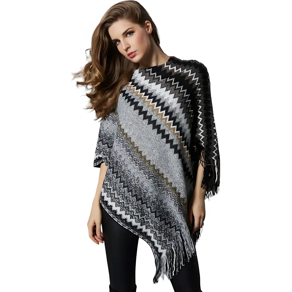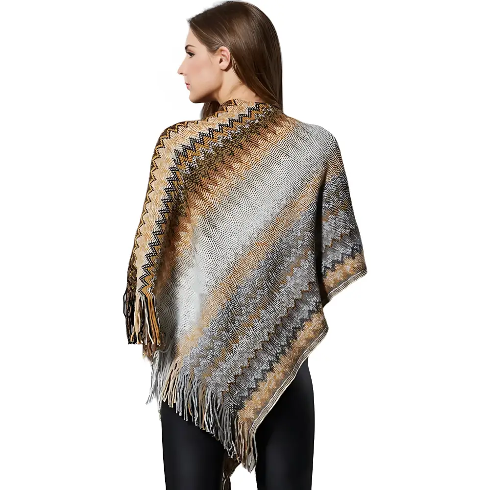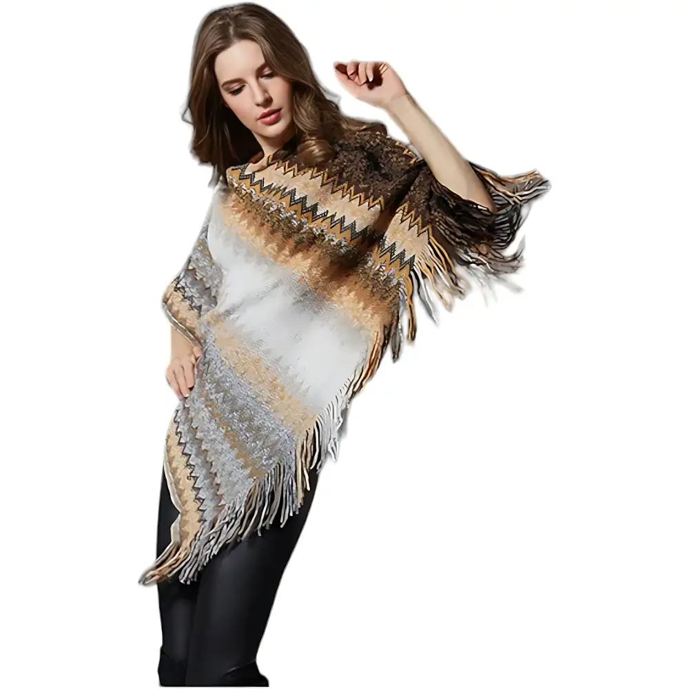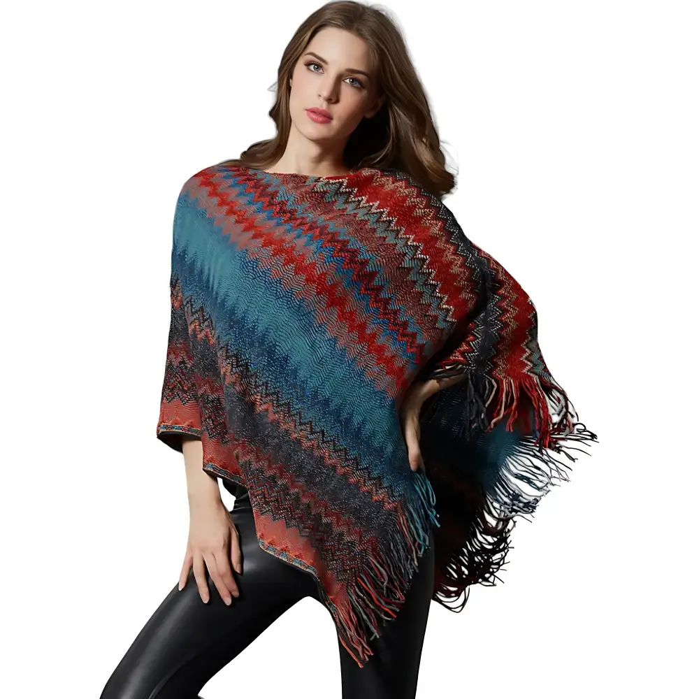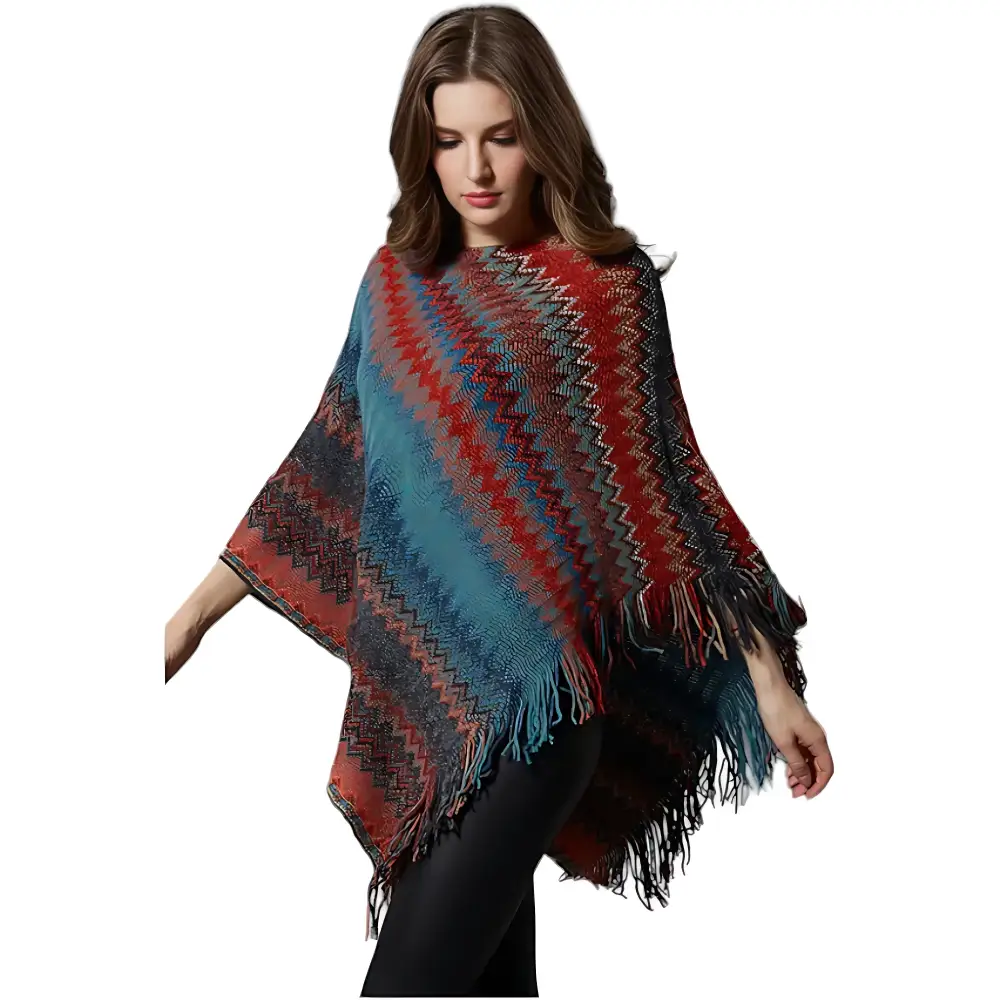 Le Poncho multicolore femme est notre pièce mode du moment qui complètera votre dressing en vu de la saison hivernal. Conçu à partir de matière en polyester de haute qualité, il est épais et doux au toucher. Tendance, son look décontracté et le style bohème donnera un style atypique à votre tenue. Ses manches larges libèrent vos mouvements et donnent un effet cocon pour plus de confort et de chaleur.