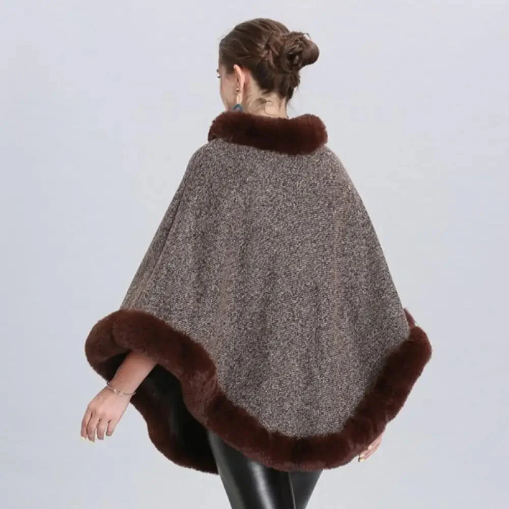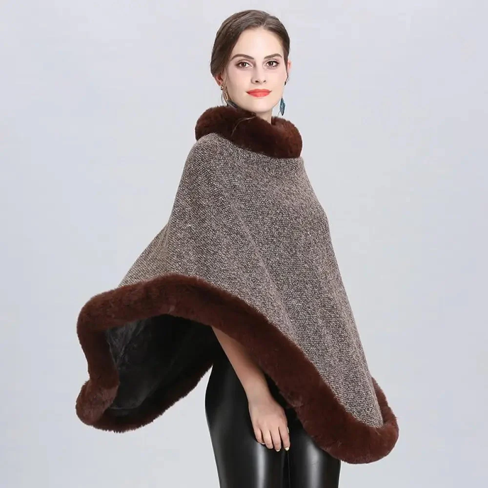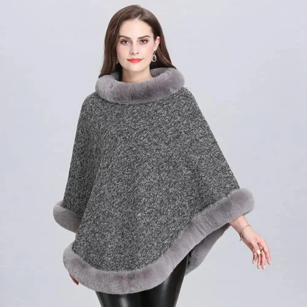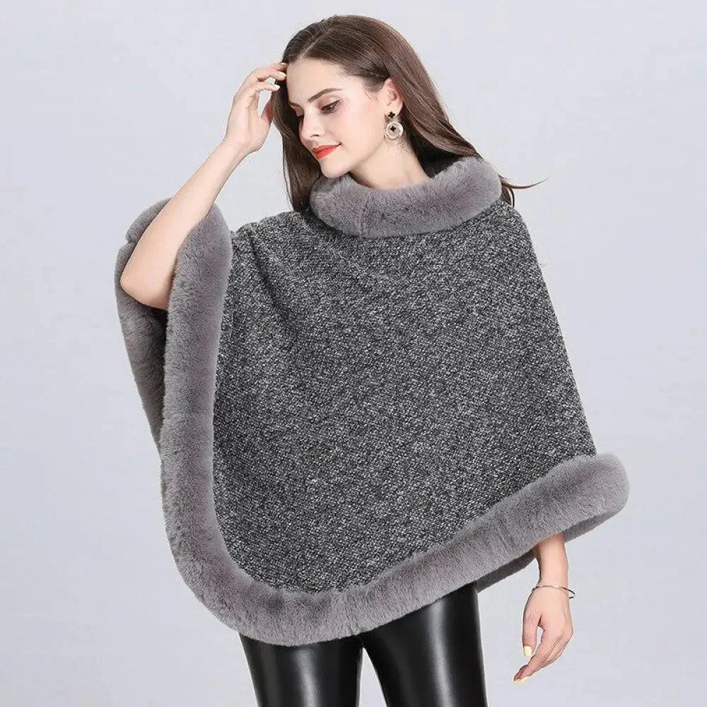 Poncho Noir Col Fausse Fourrure : Raffinement hivernal