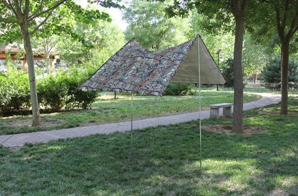 Ce poncho multifonction est fabriqué dans un tissu imperméable résistant. Il se déploie facilement et montre toute sa praticité. Ses œillets renforcés aux coins, vous permettent de le fixer au sol ou de le suspendre comme une bâche, une tente.