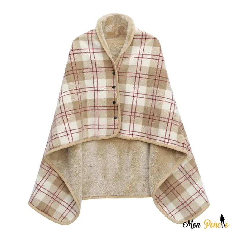 D’un côté, vous avez le motif à carreaux beige et marron qui rappelle les plaids écossais classiques. De l’autre, une polaire unie beige toute douce. Les boutons sur le devant maintiennent le poncho fermé quand vous vous déplacez. Le col large façon châle entoure bien le cou sans serrer. Avec ses 500g seulement, il se plie facilement dans un sac de voyage. Pratique en avion quand la clim est trop forte, ou à la maison quand vous voulez juste rester au chaud sans enfiler un pull. La dimension généreuse de 100x140cm couvre bien sans être encombrante.