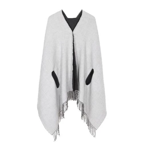 Une belle frange vient orné ce poncho réversible, ses teintes unies réchaufferont votre cœur et votre dressing d’été / automne. Sol col en V sublimera votre poitrine ultra féminine avec élégance et délicatesse. Portez le, rentré dans votre pantalon ou sur un chemisier, son cachemire saura mette en valeur votre douceur !