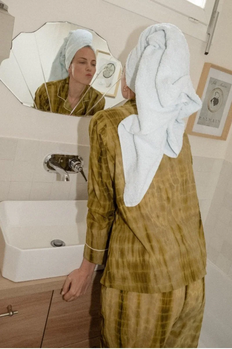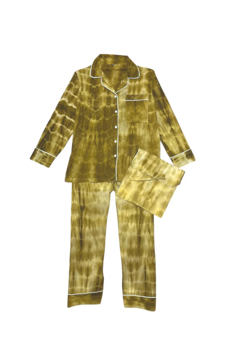 Notre Pyjama 100% coton indien se pare de douces couleurs naturelles en tie-and-dye pour l’été.