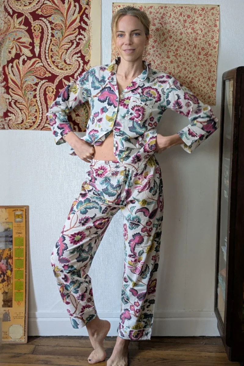 Notre mannequin Clara fait une taille 36/ XS. Le Pyjama taille du 36 au 44/ XS au XL. Un doute sur la taille? Référez-vous à notre Guide des Tailles.