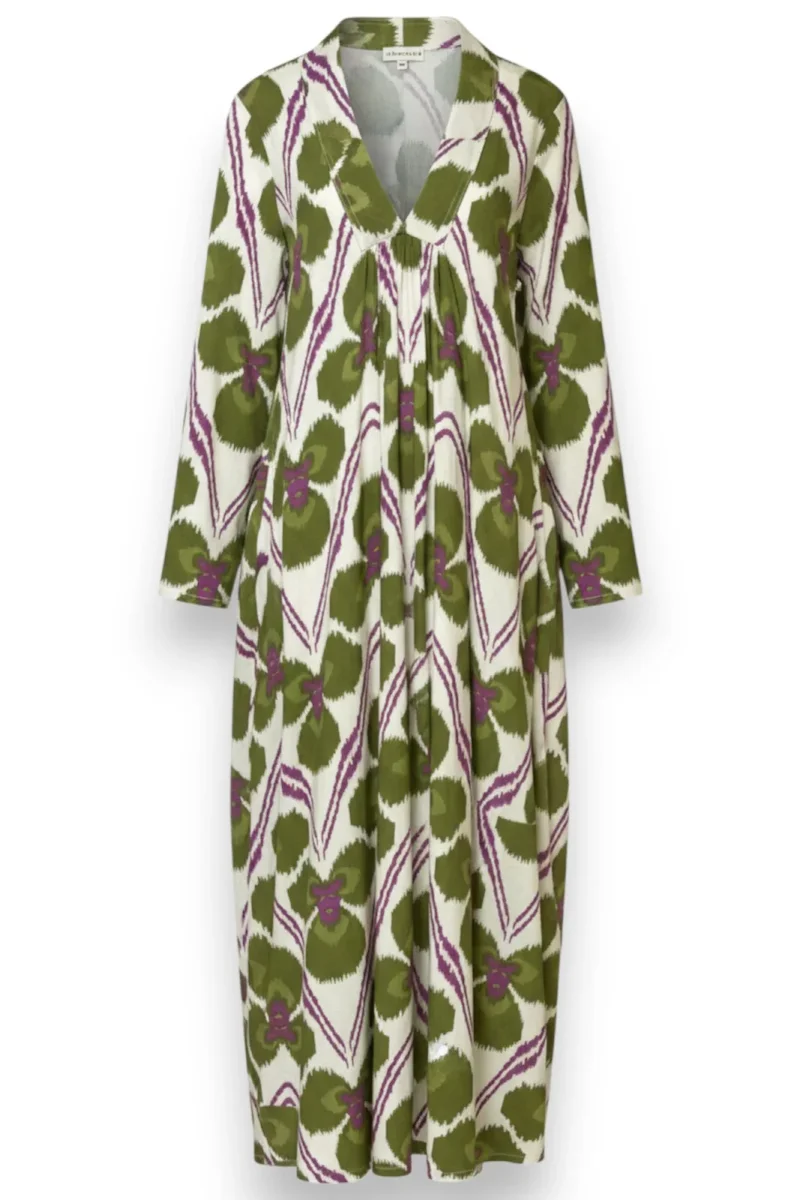 100% voile de coton, légère et respirante, imprimée au bloc de bois trempé dans la teinture à main levée à Jaipur, en Inde, ce qui ajoute une touche d’authenticité artisanale.