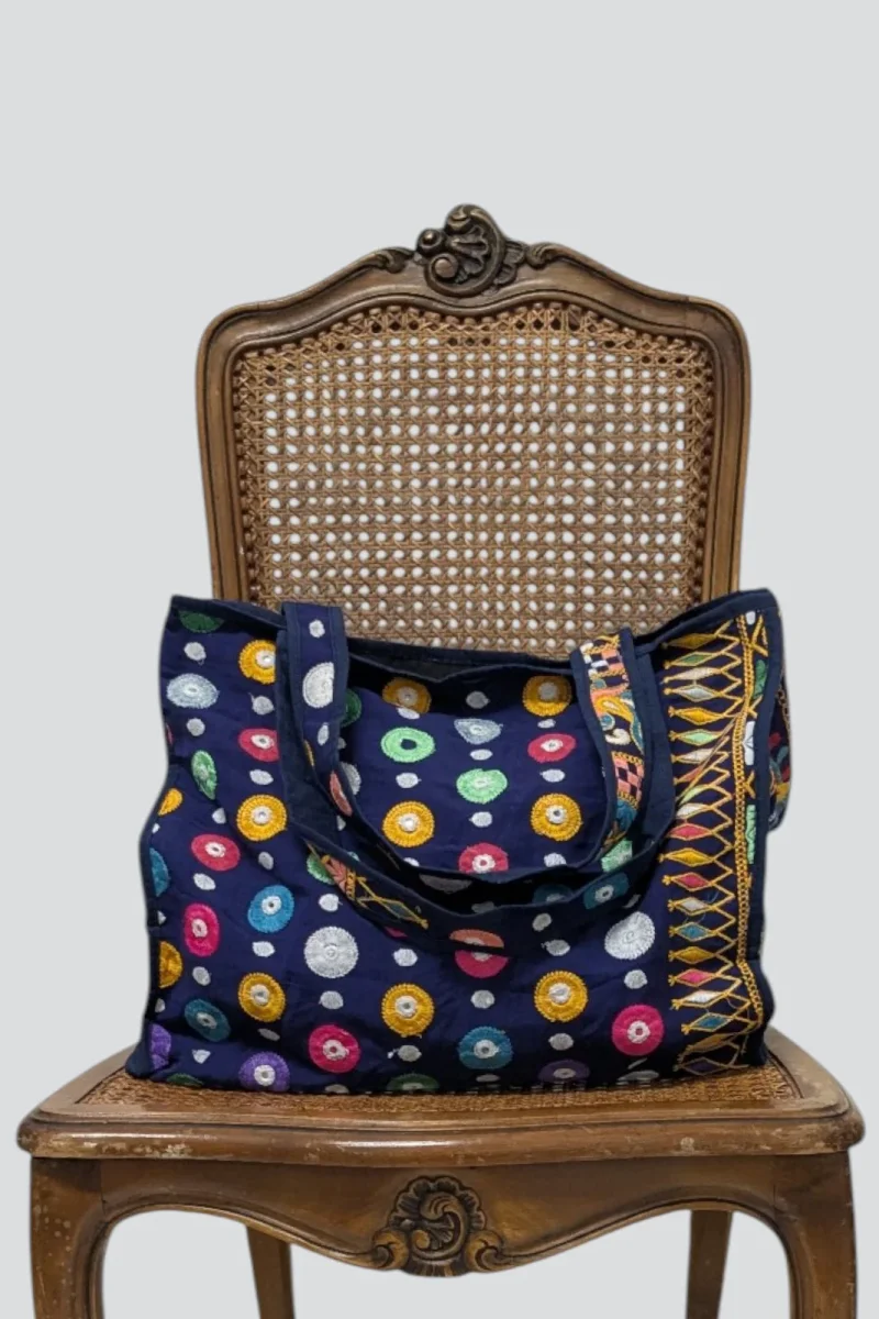 Découvrez le charme unique de notre sac en coton, conçu à partir de chutes de tissus traditionnels du Gujarat. Chaque pièce est soigneusement sélectionnée pour créer un patchwork de couleurs vives et de motifs artisanaux. Les détails de broderies ou de petits miroirs encastrés rendent ce sac vraiment unique. Avec des dimensions de 40 cm […]